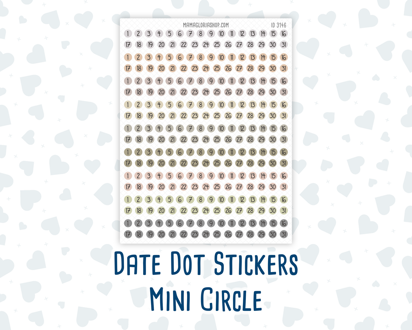 Date Dot Stickers – Mini Circle | Wild Sage Collection