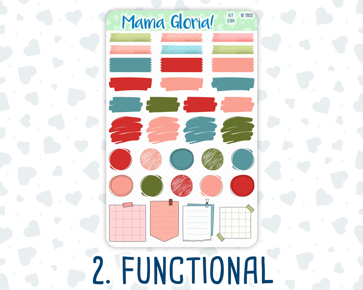 2. Functional – includes functional and decorative labels and boxes (1.5 inches wide), circle stickers, and sticky notes.