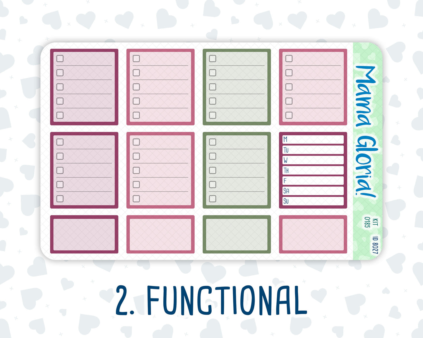 2. Functional – seven checklist full boxes, weekly tracker, four basic half boxes (1.6 inches wide)