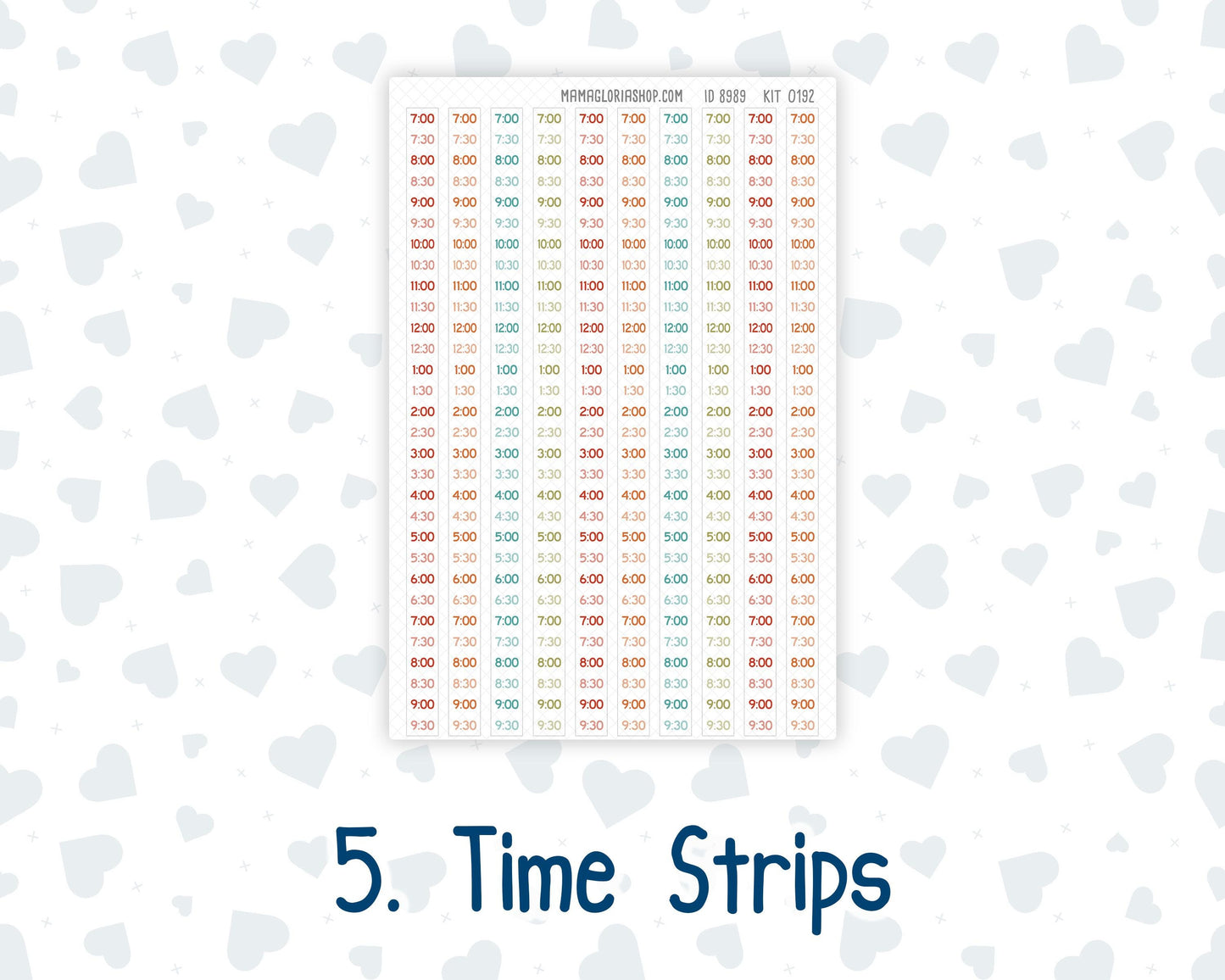 Time Strips Sheet: • Time Strips: 0.35” (W) x 7.05” (H)