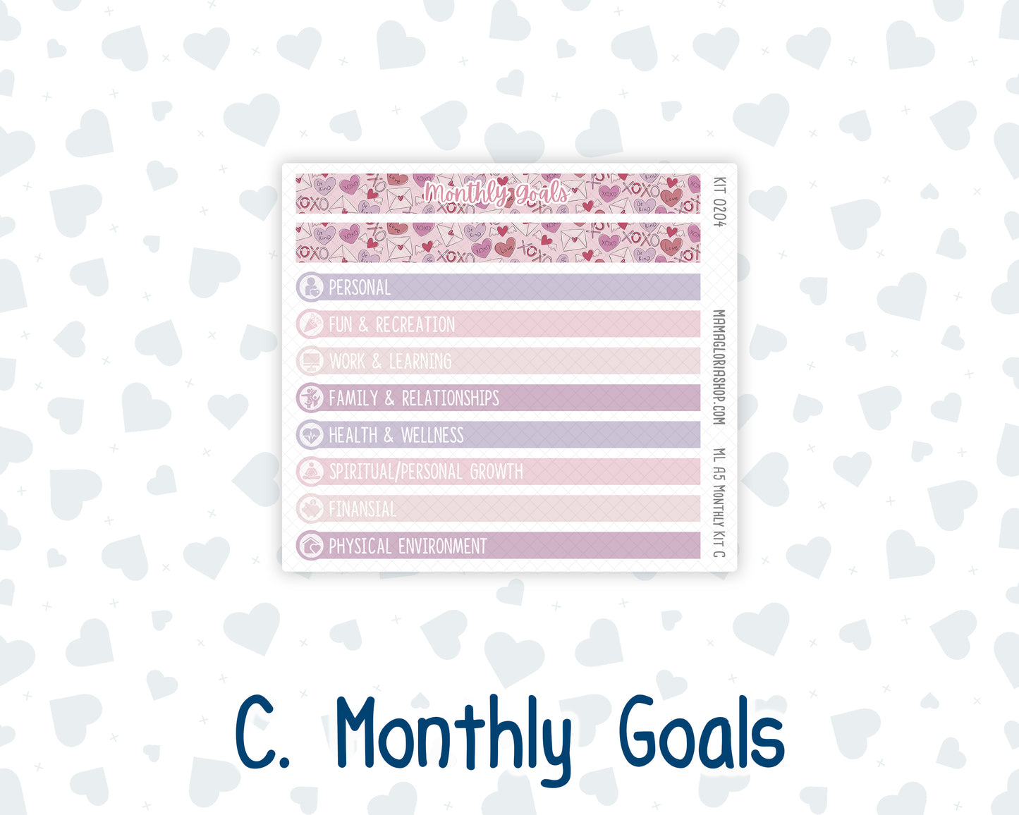 • Monthly Goals Strips: 4.76” (W) x 0.31” (H)