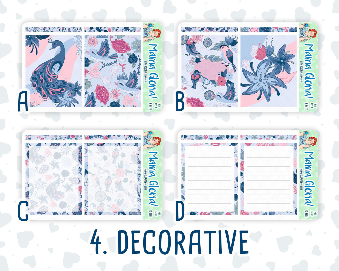 4. Decorative: Eight Bottom Box Covers for 2024-2025 planners : (4.13in tall x 3.1in wide)