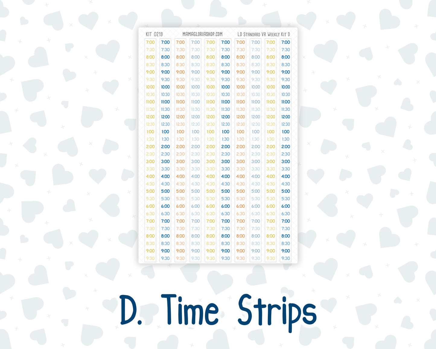 Time Strips Sheet: • Time Strips: 0.35” (W) x 7.05” (H)