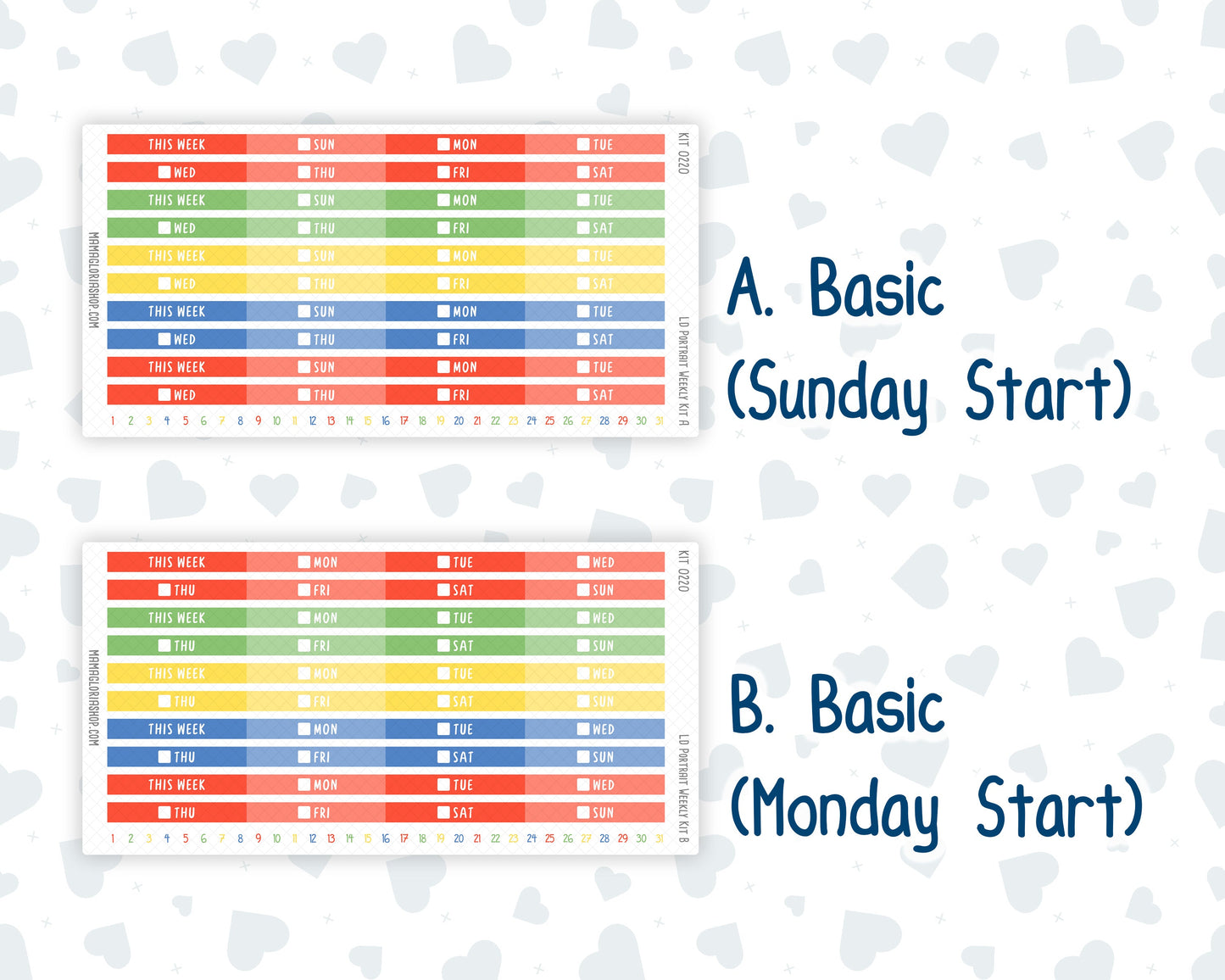 Basic Sheet: • Days of the Week Strip: 7.68” (W) x 0.28” (H)