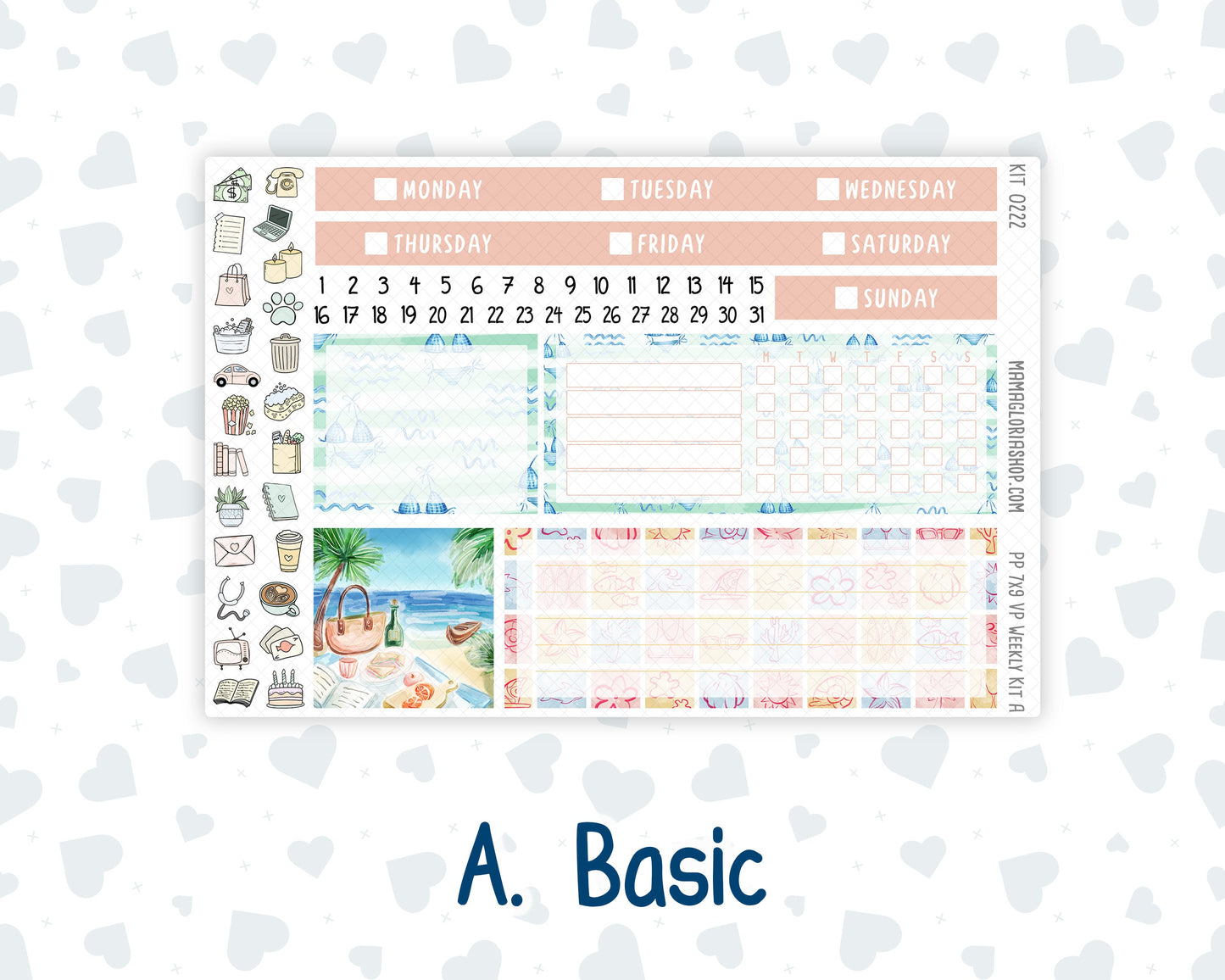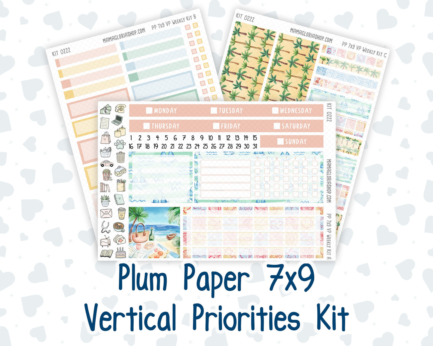 Kit 0222 - 7x9 - Vertical Priorities - Plum Paper - Weekly Kit - June - Beach Day