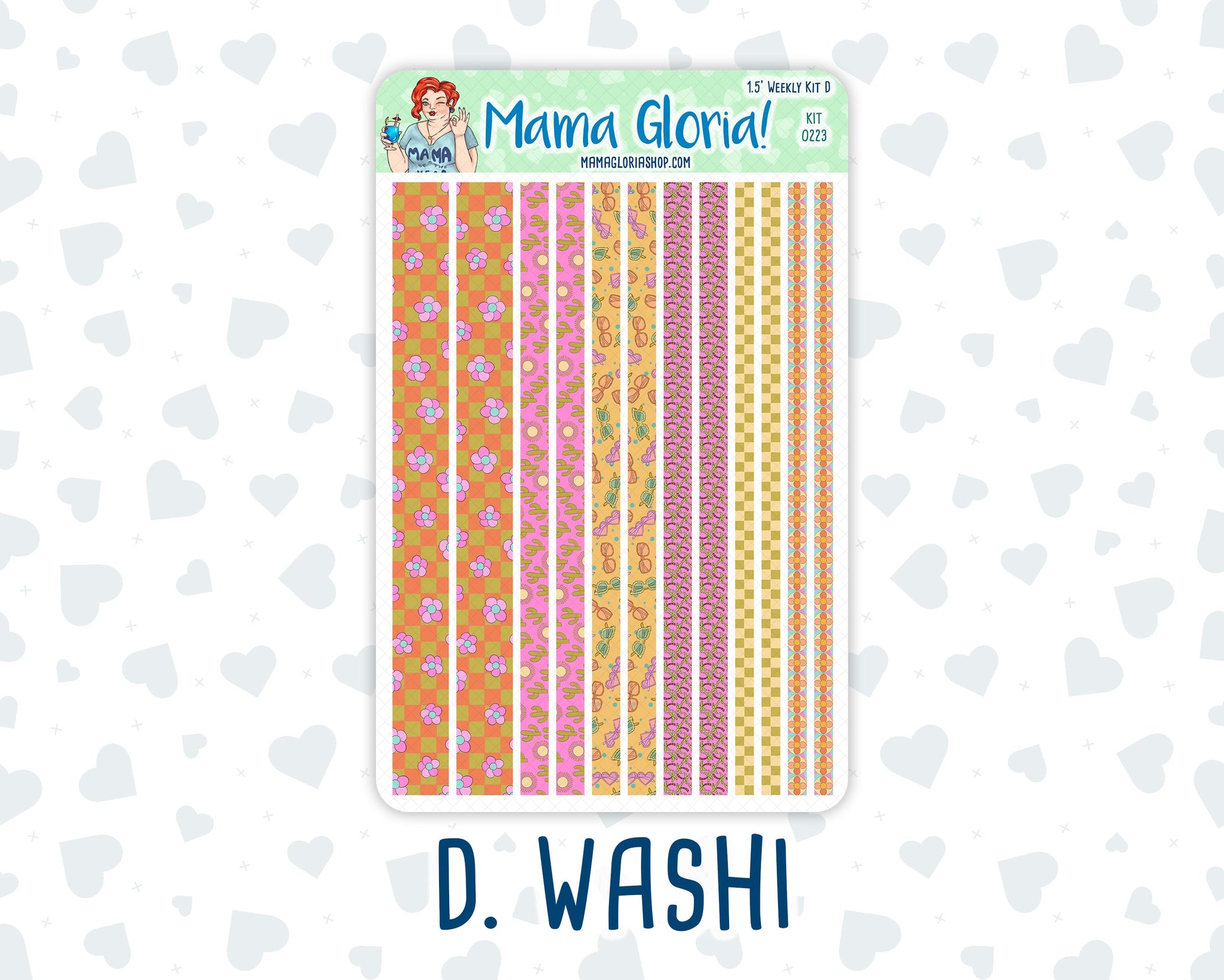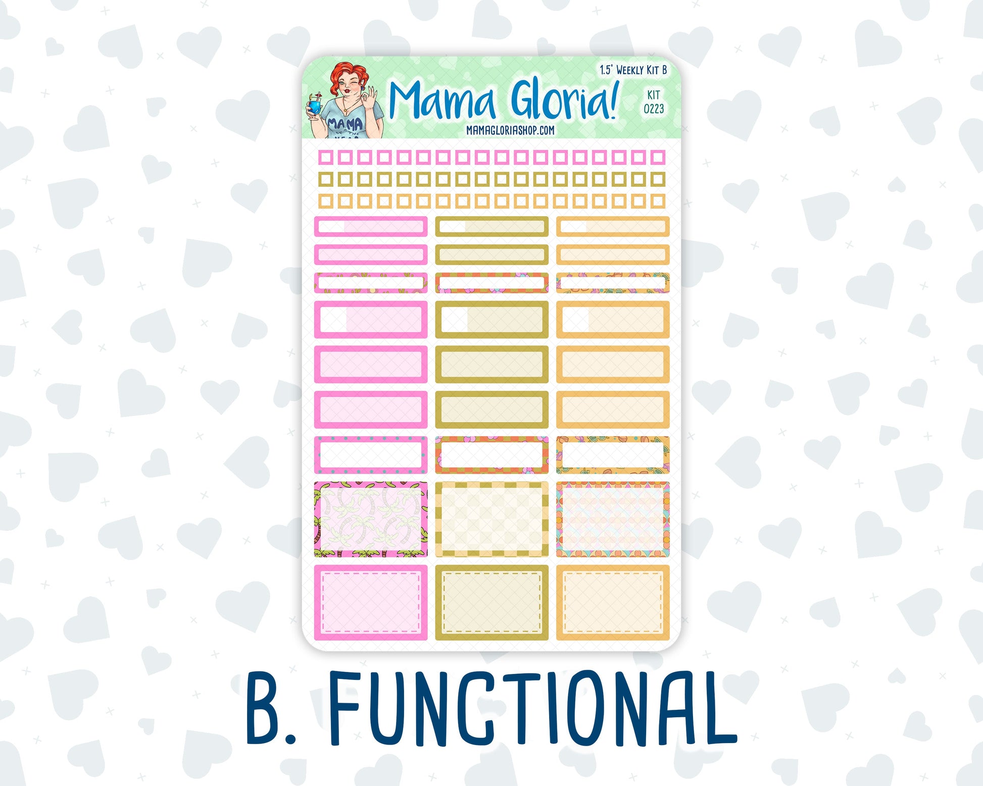 The Weekly kit consists of four full-sized sheets measuring 7.85 inches tall by 5 inches wide, including: