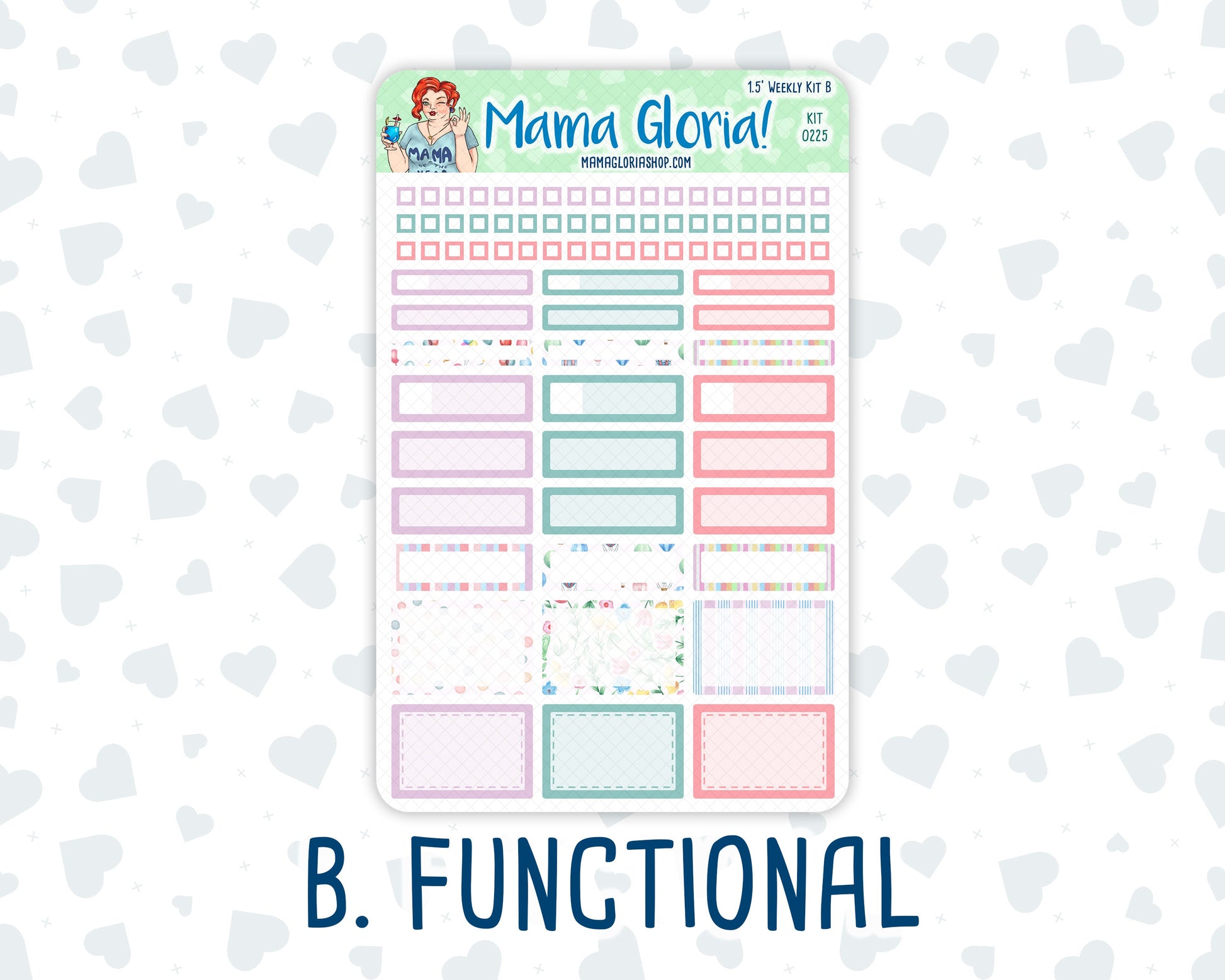 The Weekly kit consists of four full-sized sheets measuring 7.85 inches tall by 5 inches wide, including: