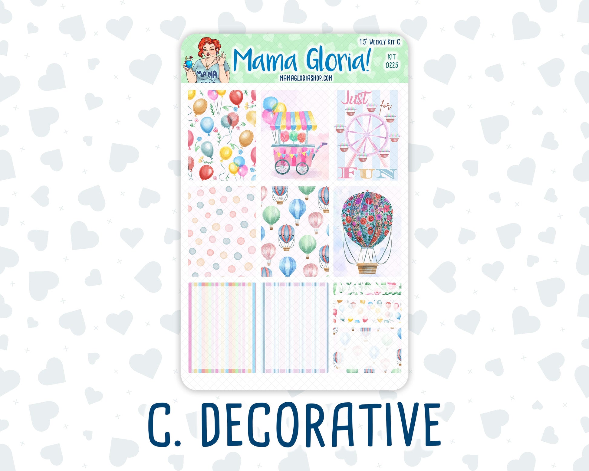 Kit 0225 - 1.5" Wide Column - Weekly Kit - July - Carnival Joy - For Vertical & Hourly Planners