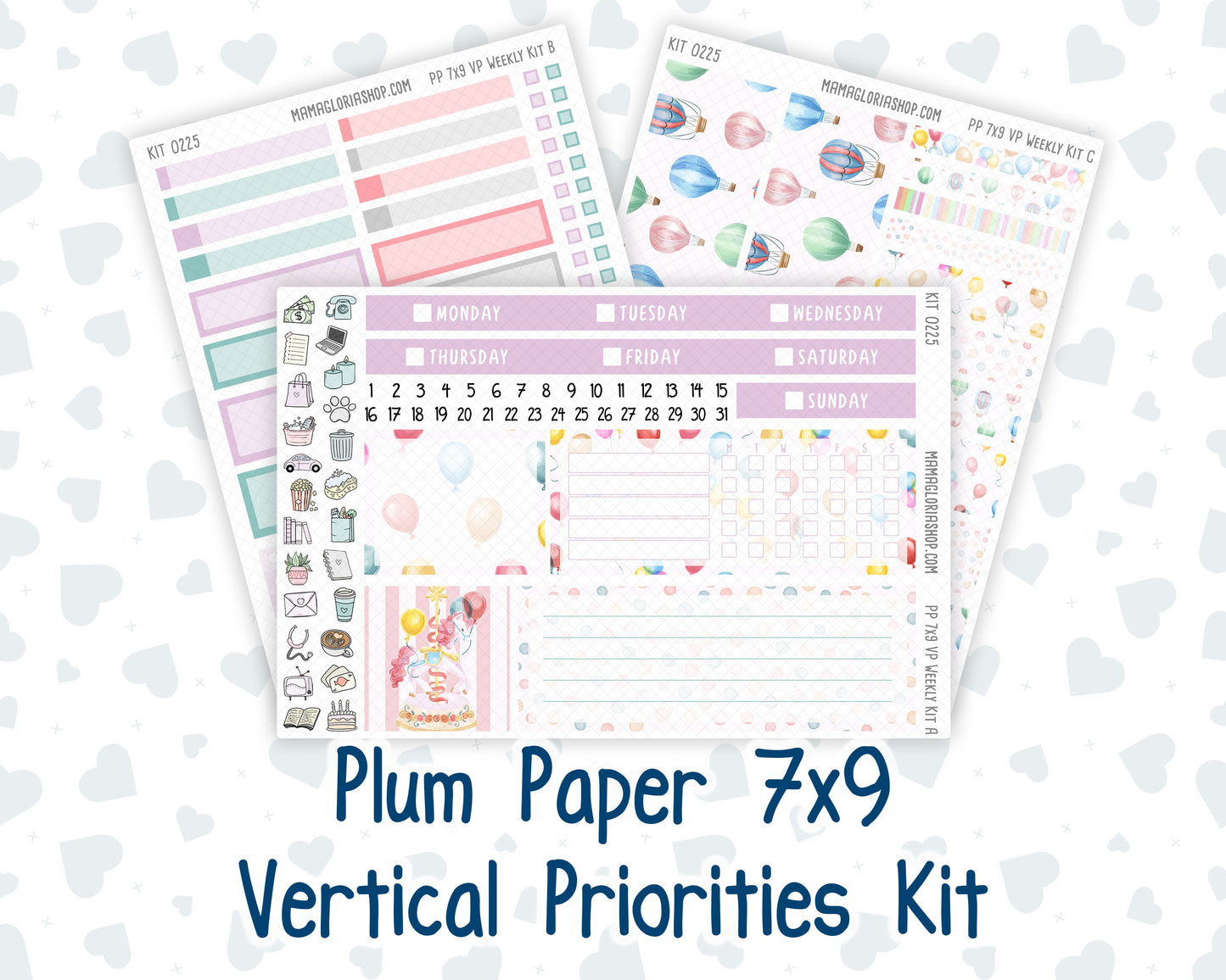 Kit 0225 - 7x9 - Vertical Priorities - Plum Paper - Weekly Kit - July - Carnival Joy