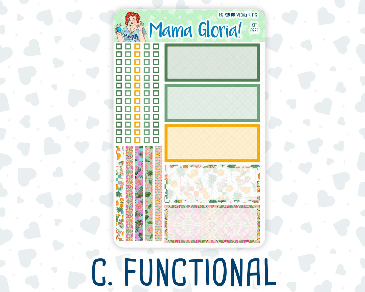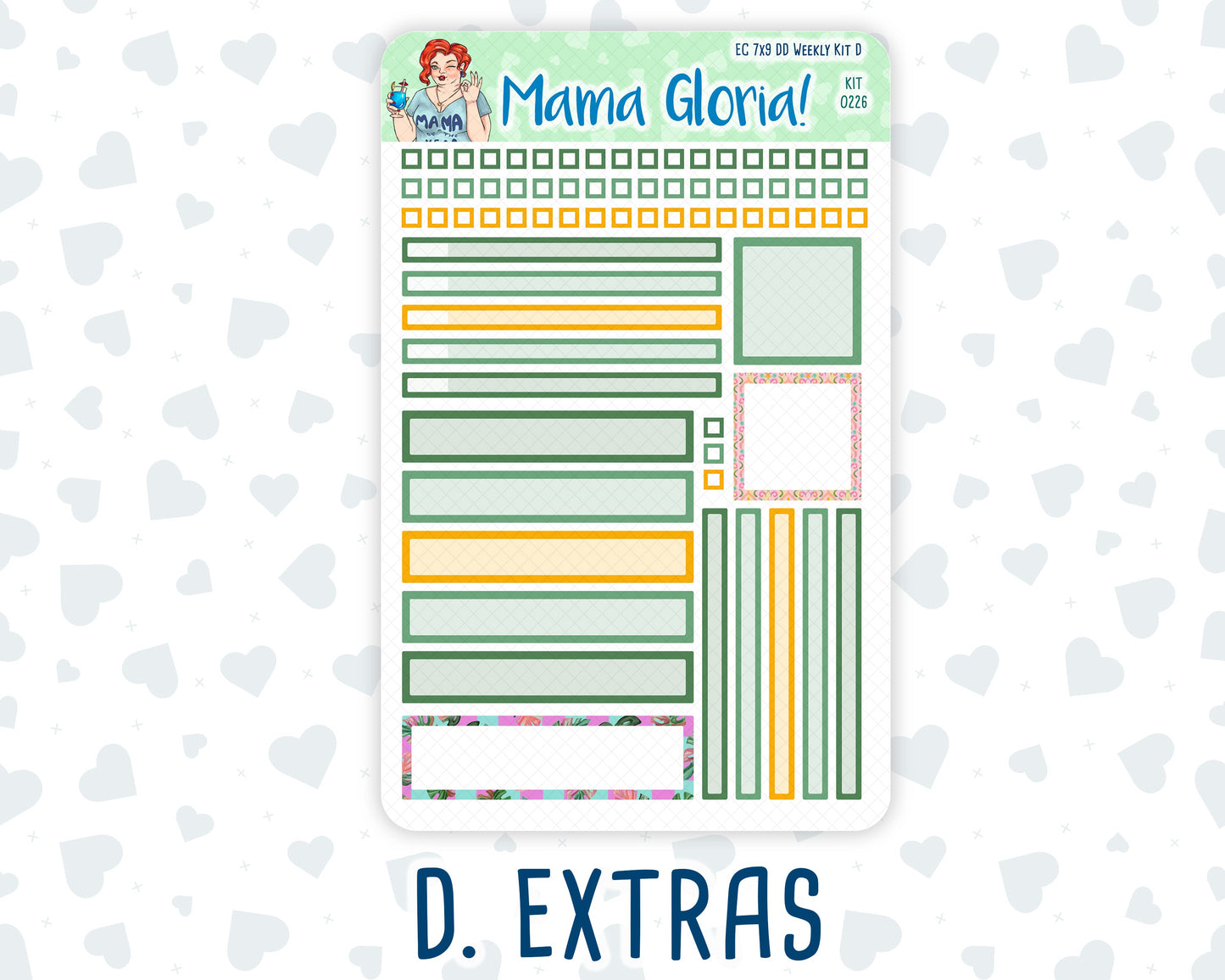 You can find additional stickers that complement this kit in the "Add Ons" category or by entering the kit's name or number in the store's search bar. Please note, WEEK AT A GLANCE and WEEKLY OVERVIEW sticker sheets are not included in the "Full Kit" option.