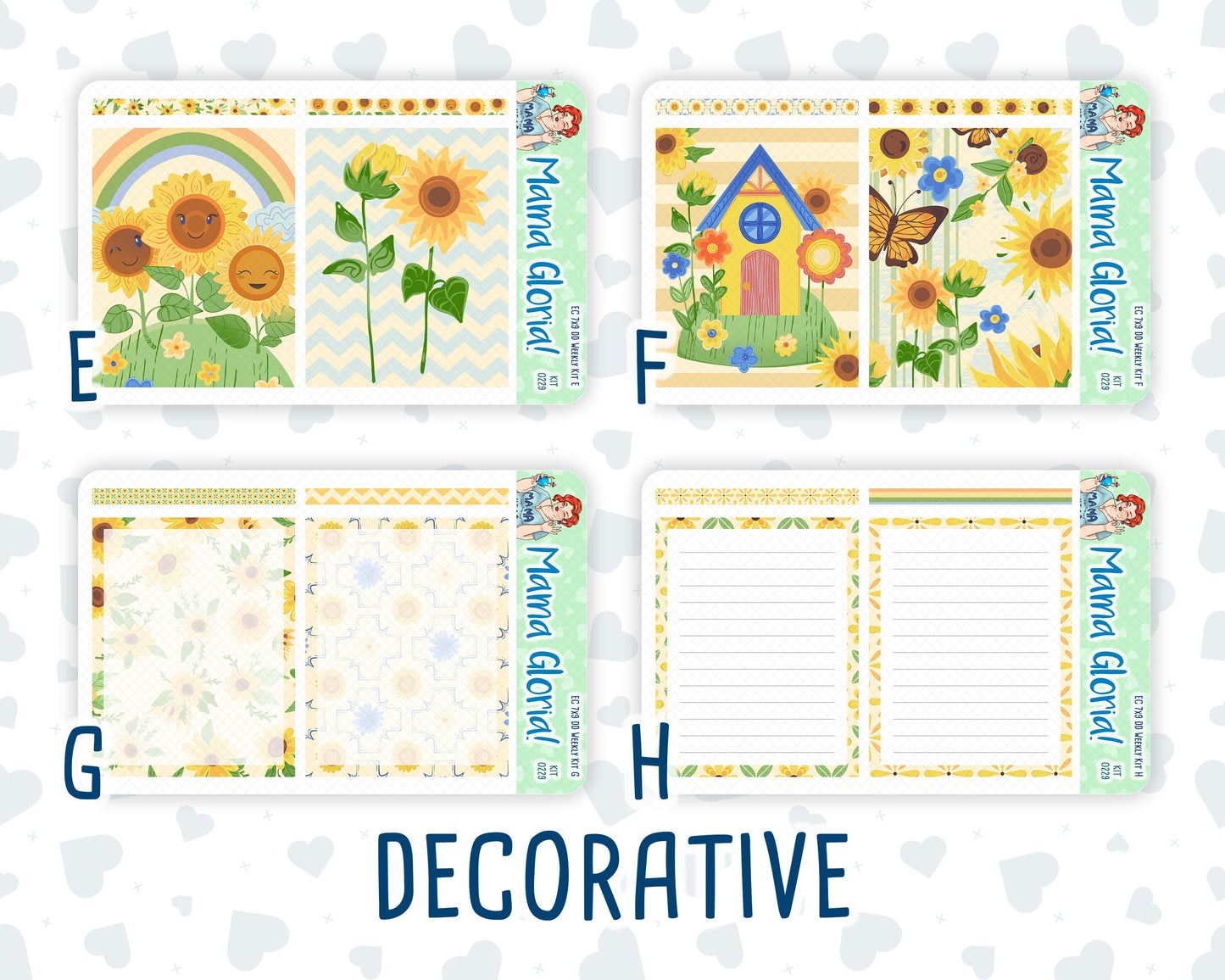 4. Decorative: Eight Bottom Box Covers for 2024-2025 planners : (4.13in tall x 3.1in wide)