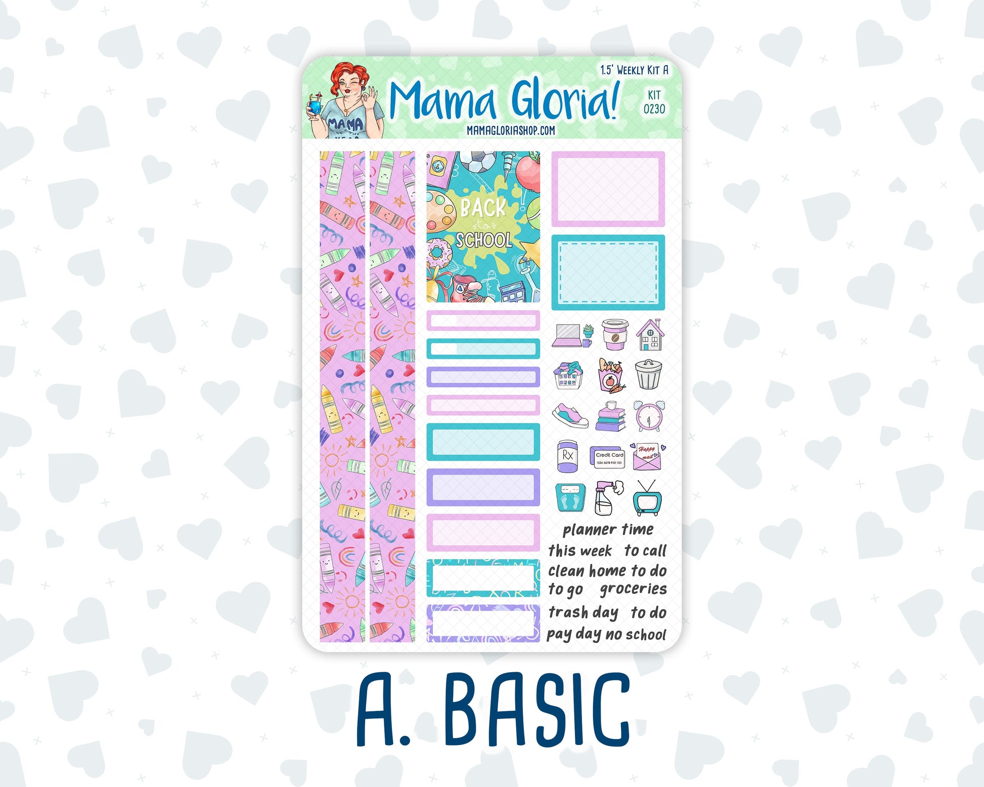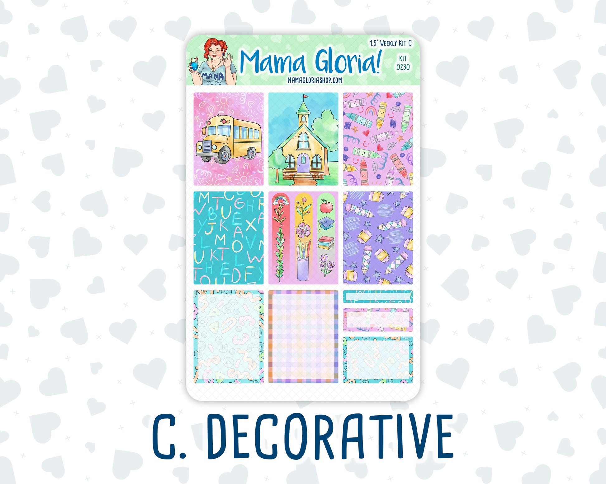 Kit 0230 - 1.5" Wide Column - Weekly Kit - August - School Daze - For Vertical & Hourly Planners