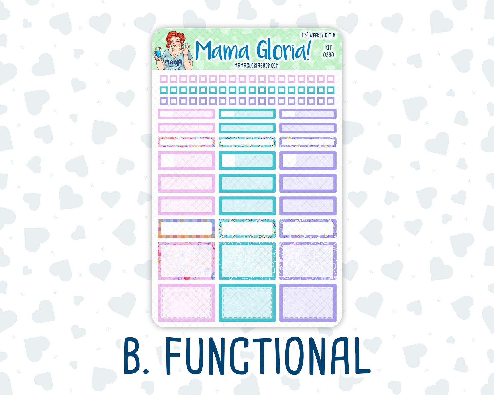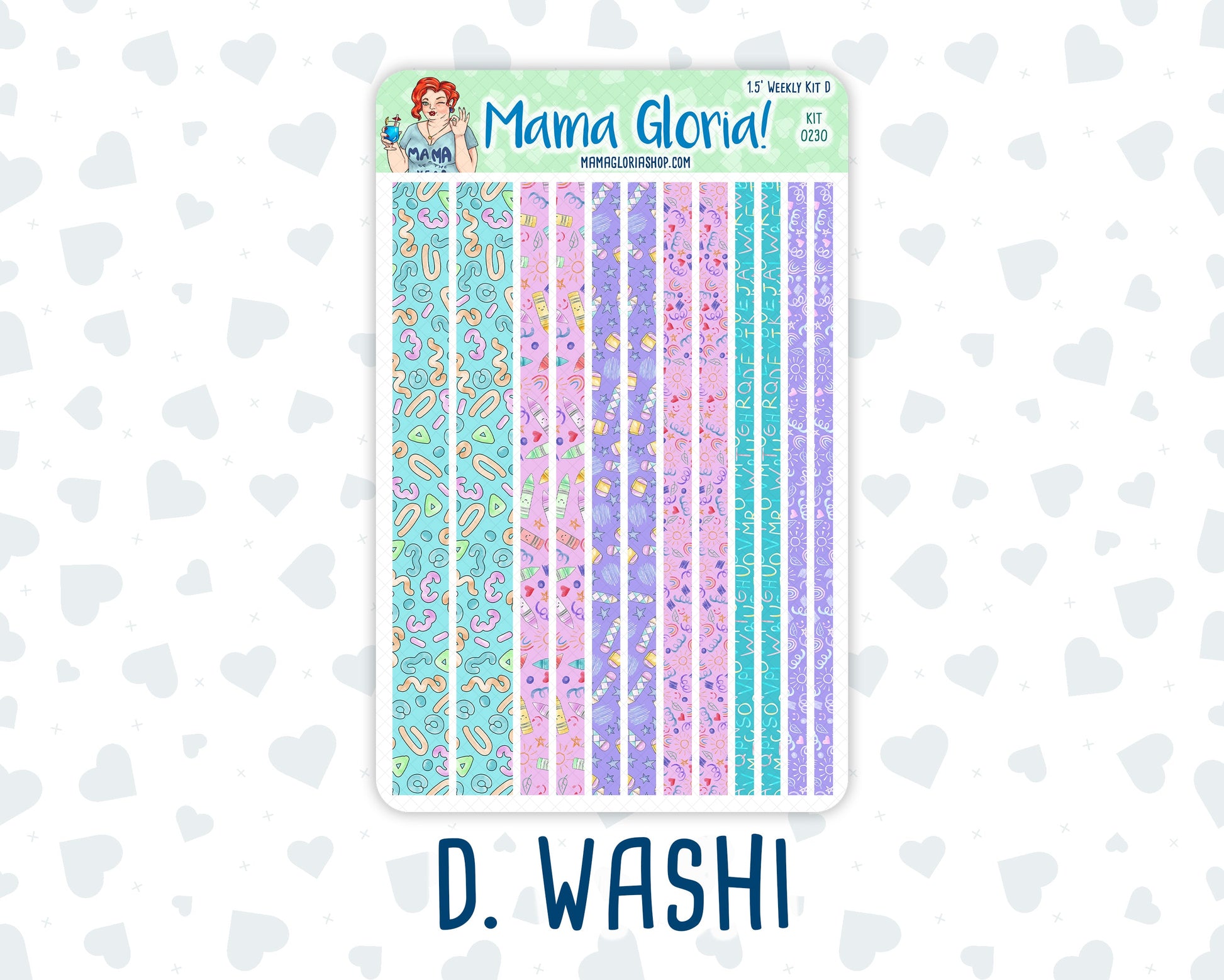 The Weekly kit consists of four full-sized sheets measuring 7.85 inches tall by 5 inches wide, including: