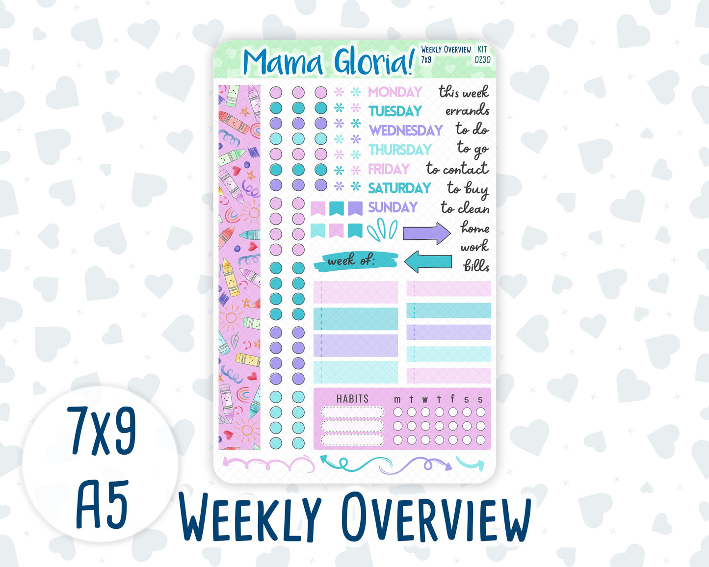 Kit 0230 - Weekly Overview - For 7x9 & A5 Planners | Notebooks - August - School Daze