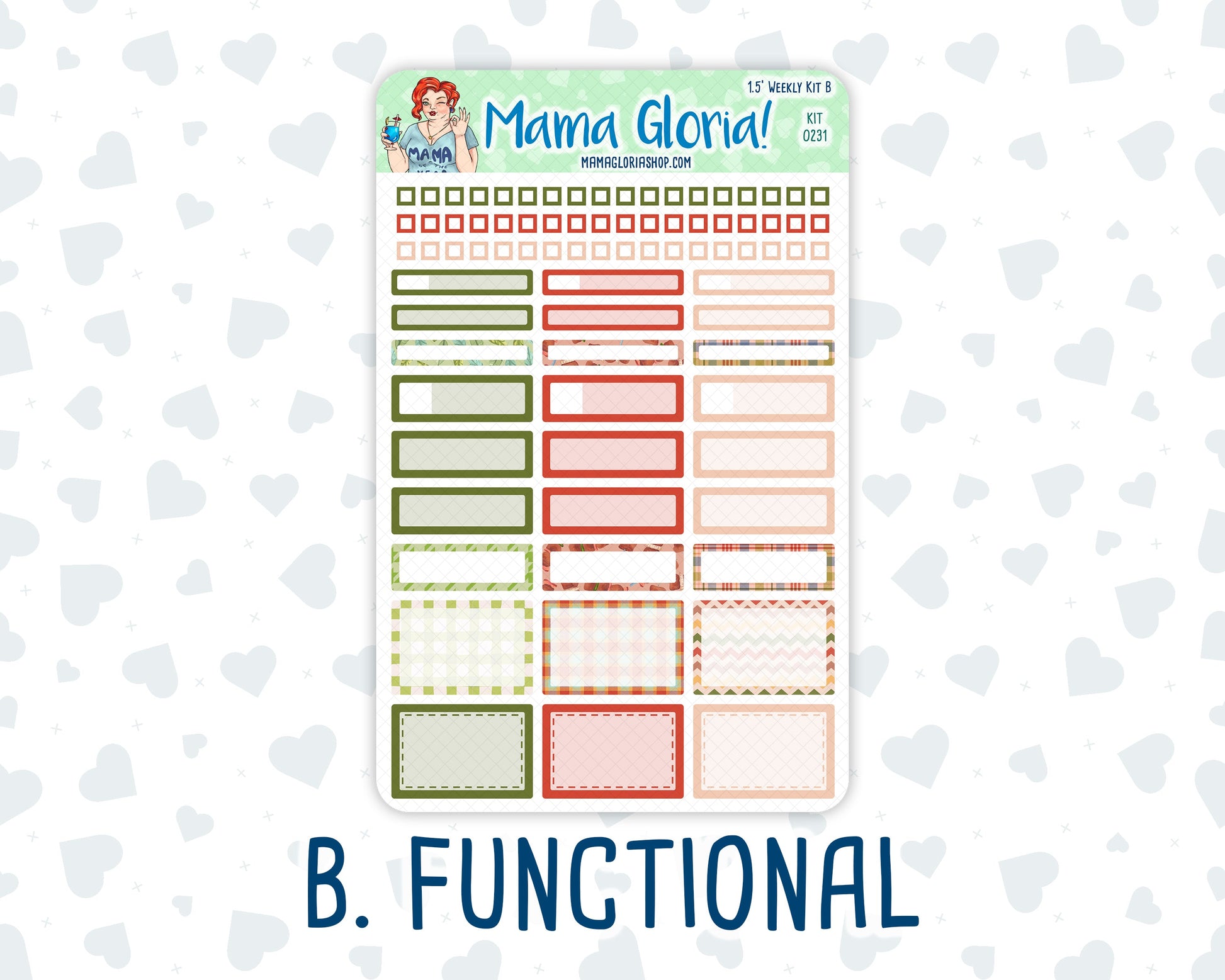 The Weekly kit consists of four full-sized sheets measuring 7.85 inches tall by 5 inches wide, including: