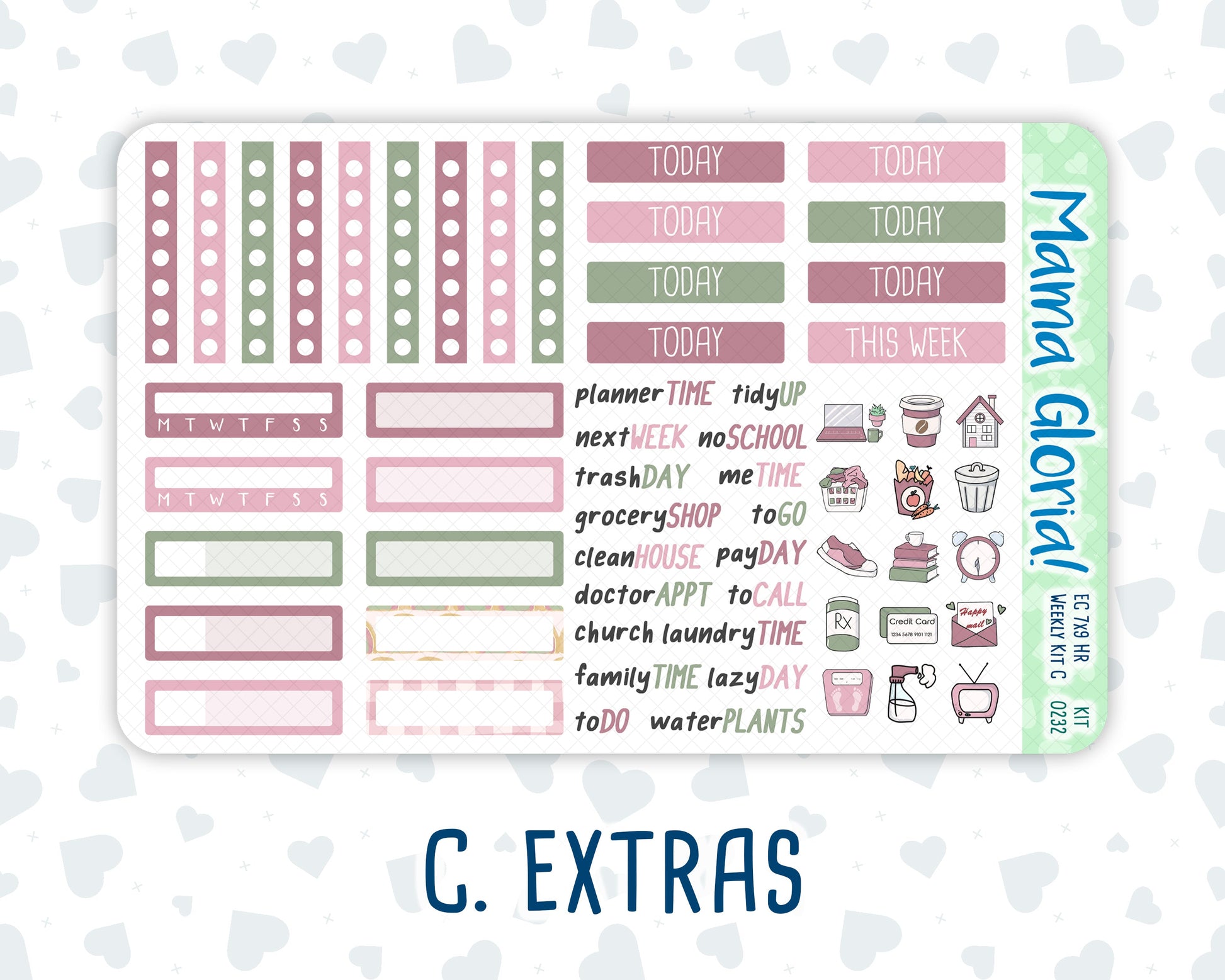 This kit is specially designed for the Erin Condren 7x9 Horizontal planner. However, some pages such as Functional, Extras, and Decorative are also suitable for the Erin Condren Hourly Planner.