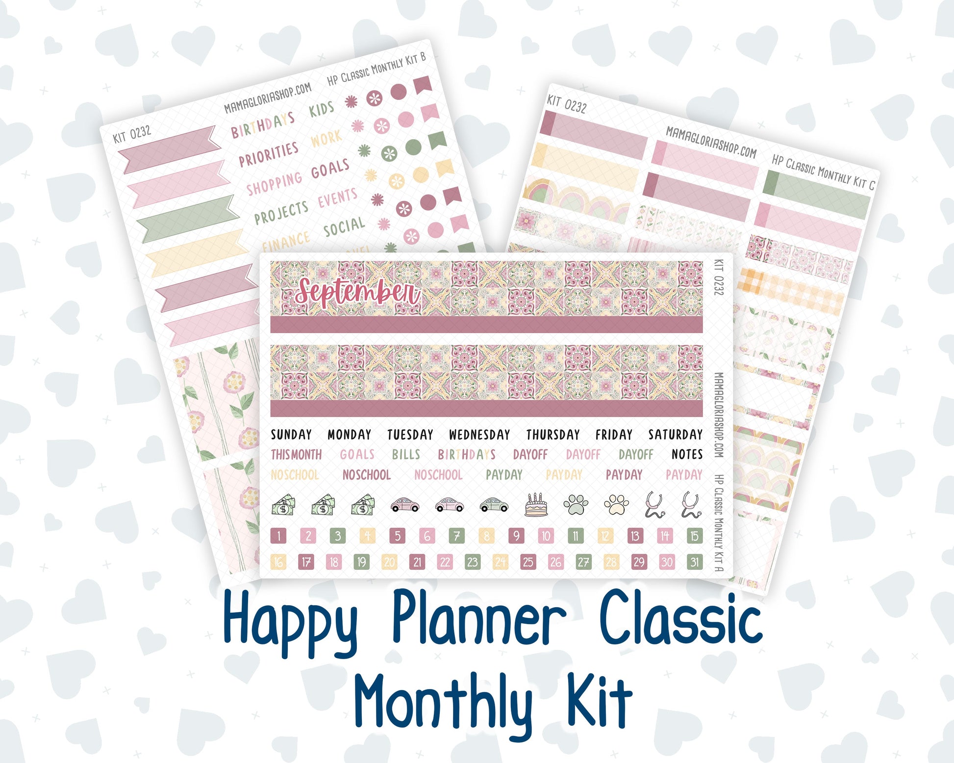 This kit is specially designed for the Happy Planner (Classic Size) 7x9 Monthly Layout.