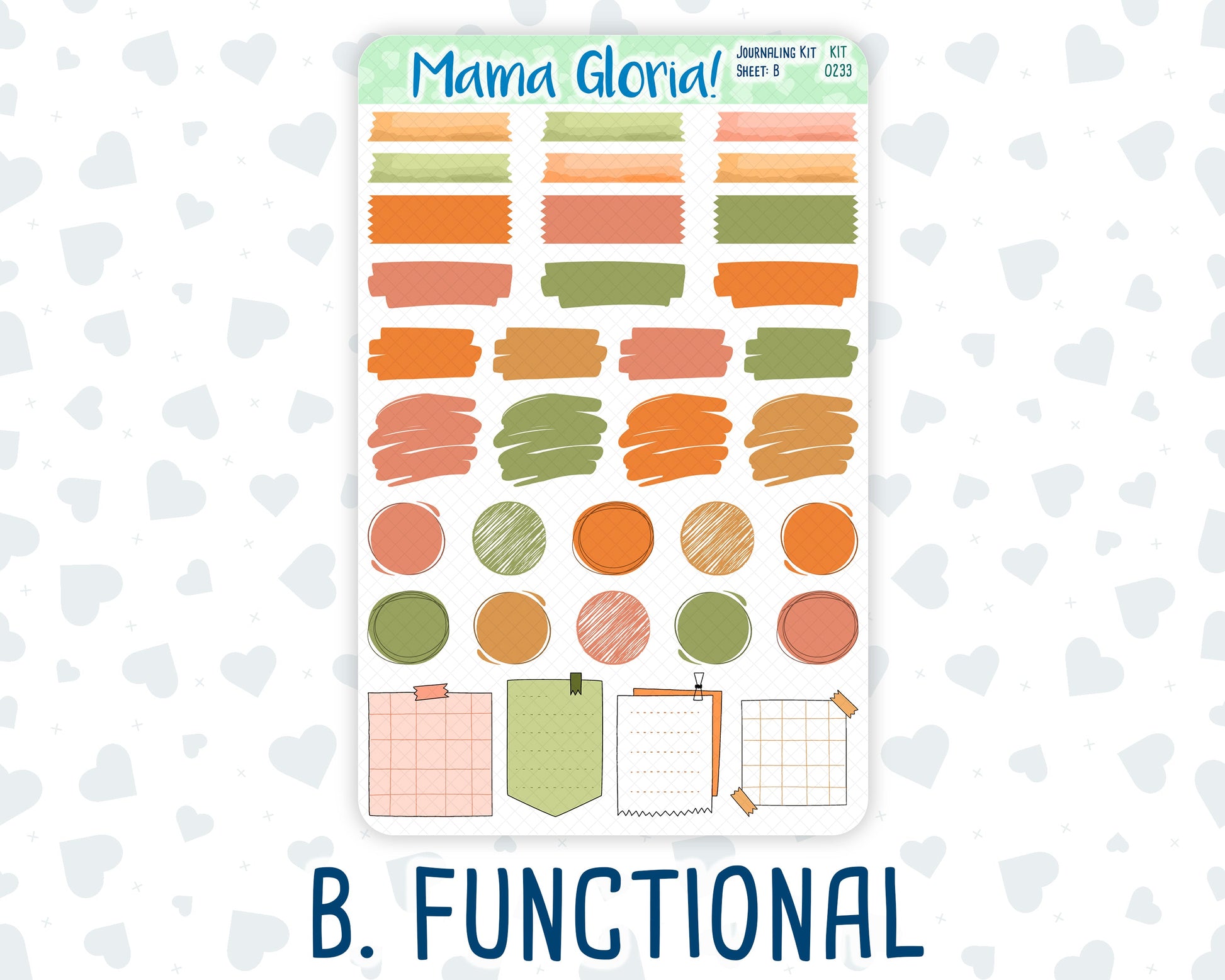 The Journaling Kit consists of four sheets: Basic, Functional, Decorative, and Clipart. This set is suitable for almost any planner, notebook, or journal, regardless of size. It's perfect for those who love planning with a creative touch, offering the ideal blend of creativity and practicality. With this kit, you can create any layout in your planner. It can be used independently or with other kits of the same design. To find other kits in the same design, simply enter the kit number in the store's search bar.