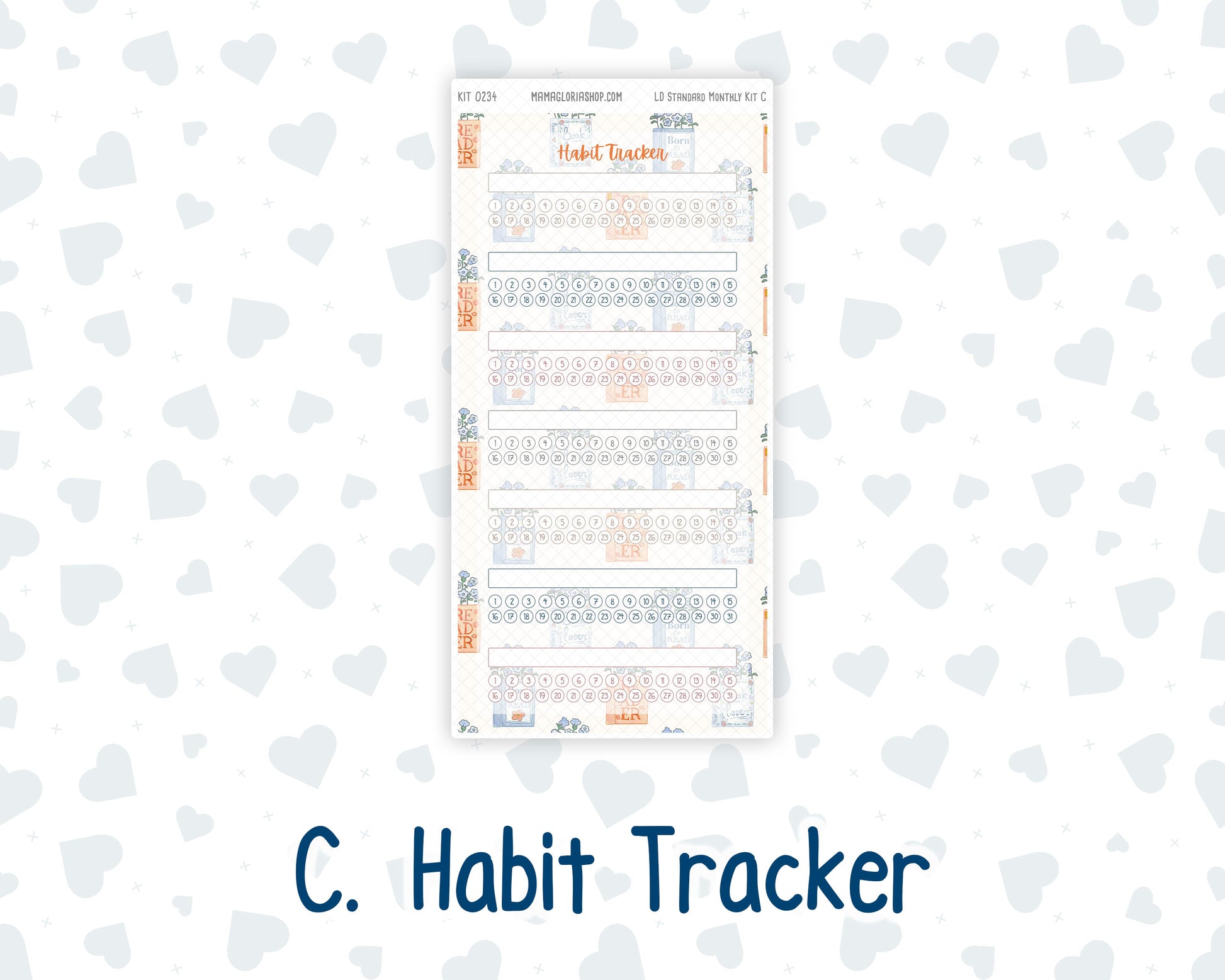 Habit Tracker Sheet: • Habit Tracker: 4.37” (W) x 8.86” (H)