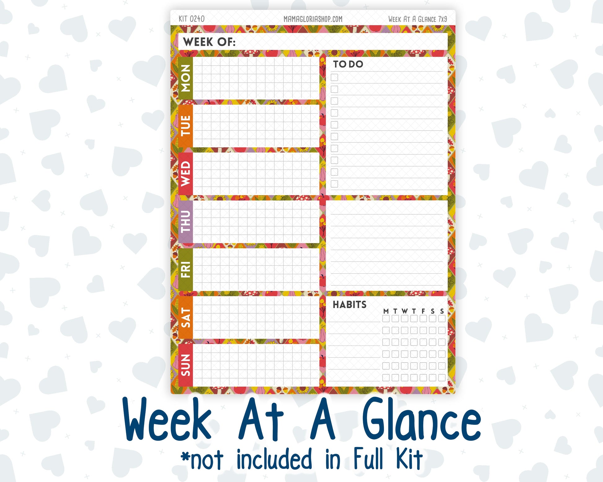Please note, WEEK AT A GLANCE sticker sheet are not included in the "Full Kit" option.