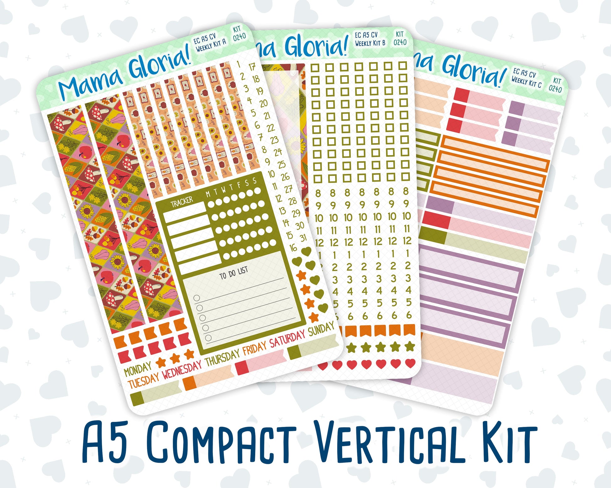 This kit is specifically designed for the Erin Condren A5 Compact Vertical planner. It also fits well with other A5 notebooks with lined, graph, or dot grid pages that have a free layout.