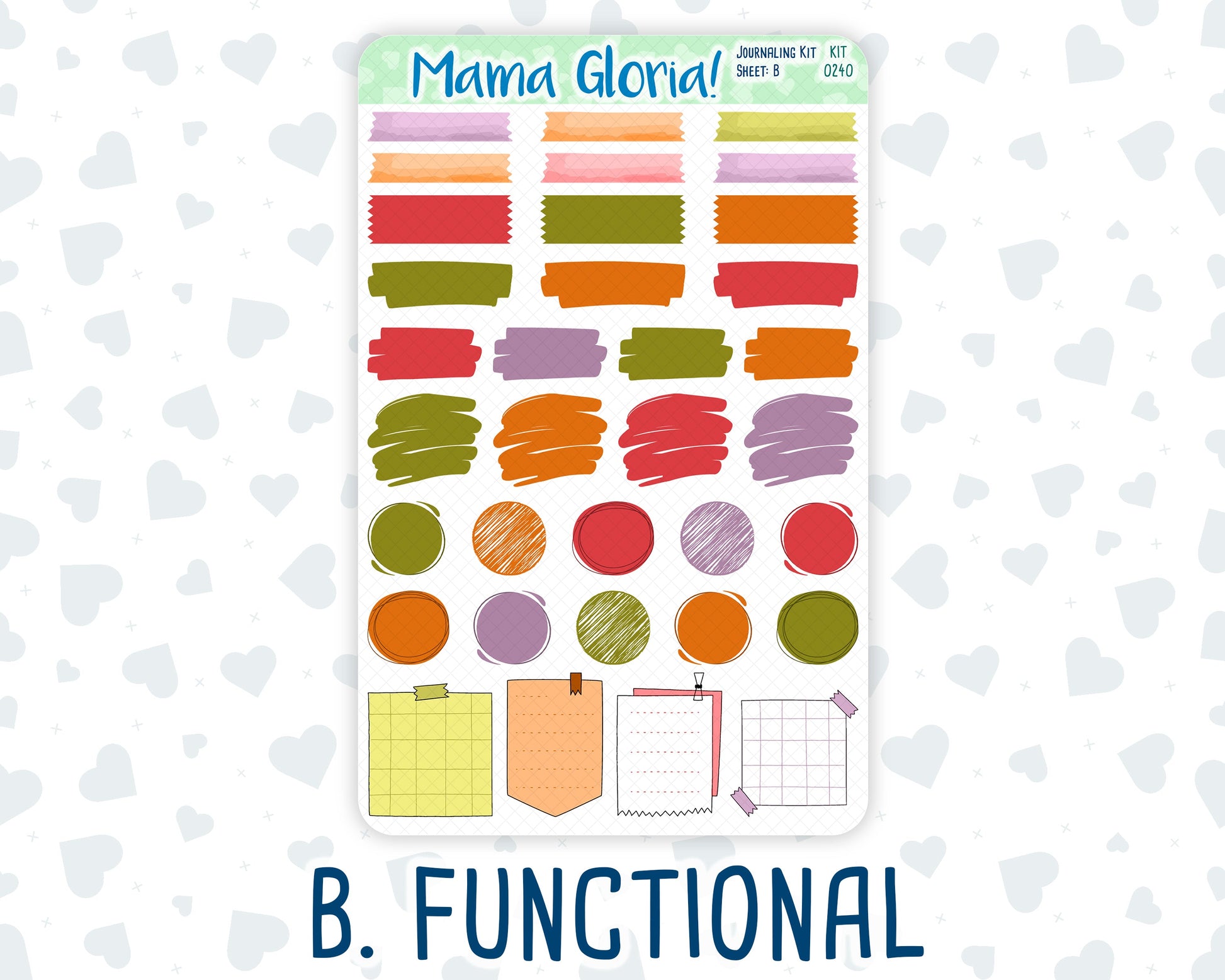 2. Functional – includes functional and decorative labels and boxes (1.5 inches wide), circle stickers, and sticky notes.