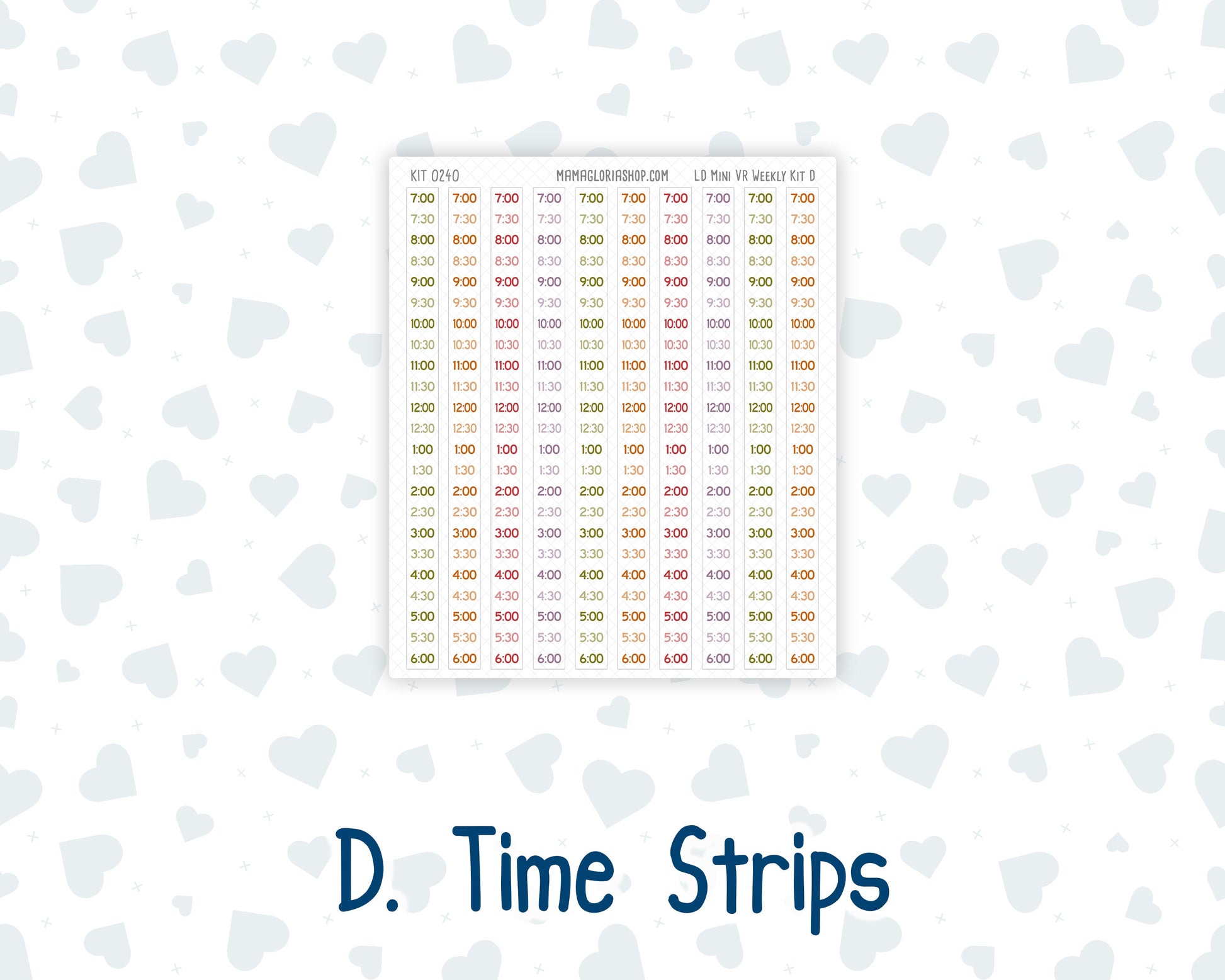 Time Strips Sheet: • Time Strips: 0.35” (W) x 5.39” (H)