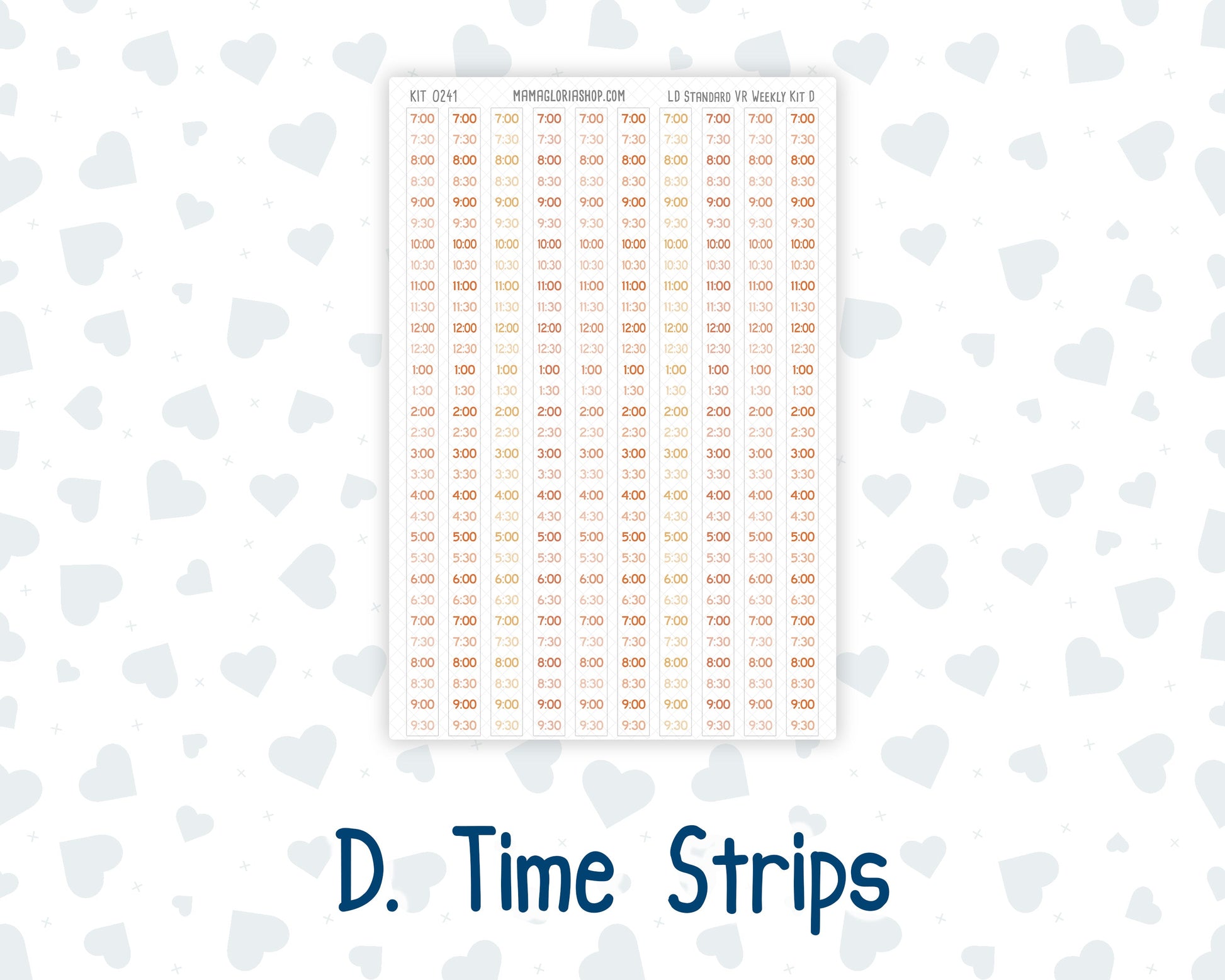 Time Strips Sheet: • Time Strips: 0.35” (W) x 7.05” (H)