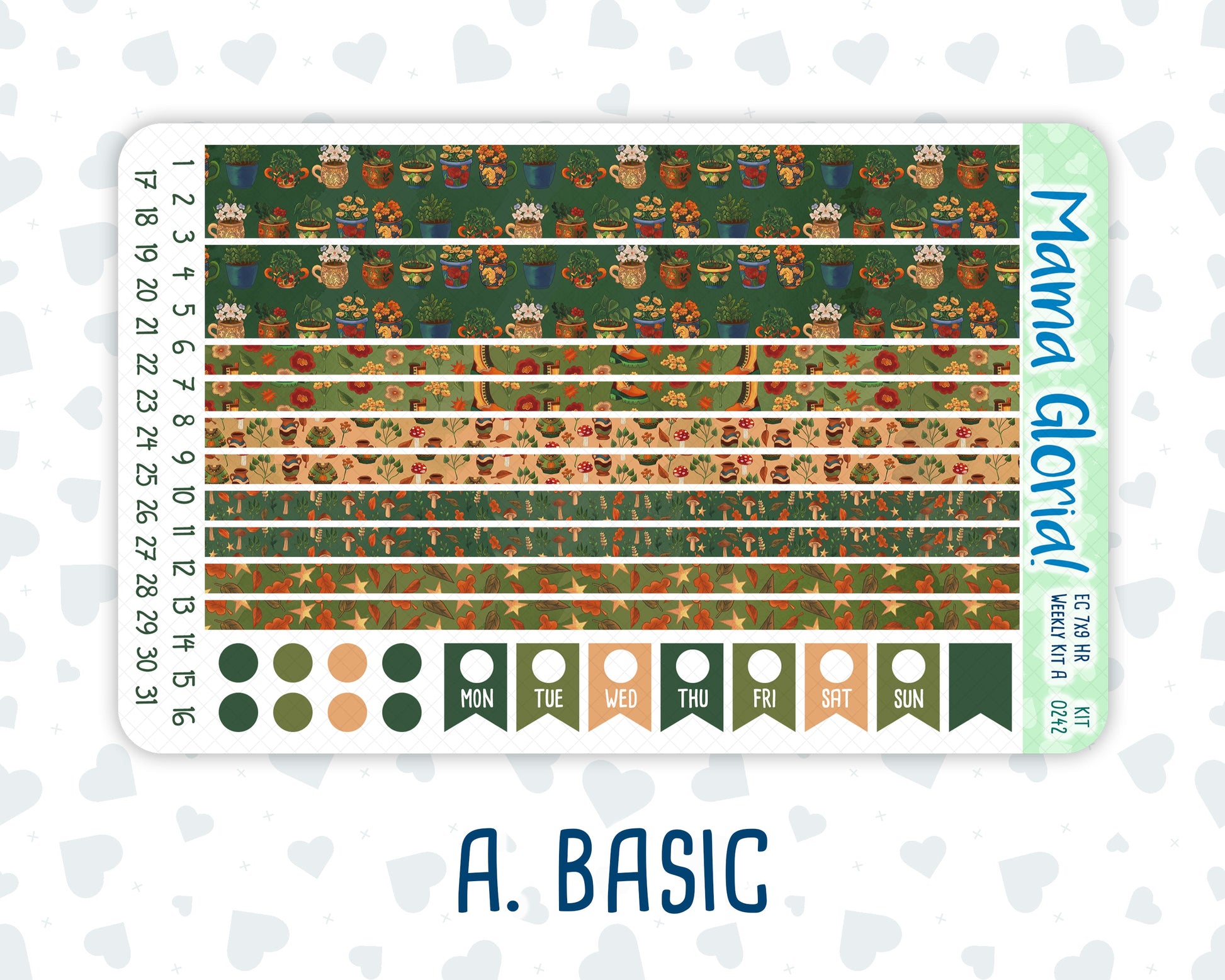 1. Basic – it includes two washi headers and eight thin washi strips, days of the week flags, bullet points