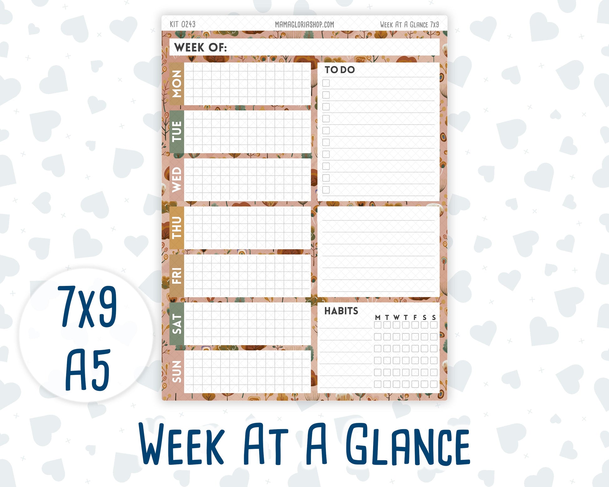Kit 0243 - Week At A Glance - For 7x9 & A5 Planners | Notebooks - November - Boho Autumn