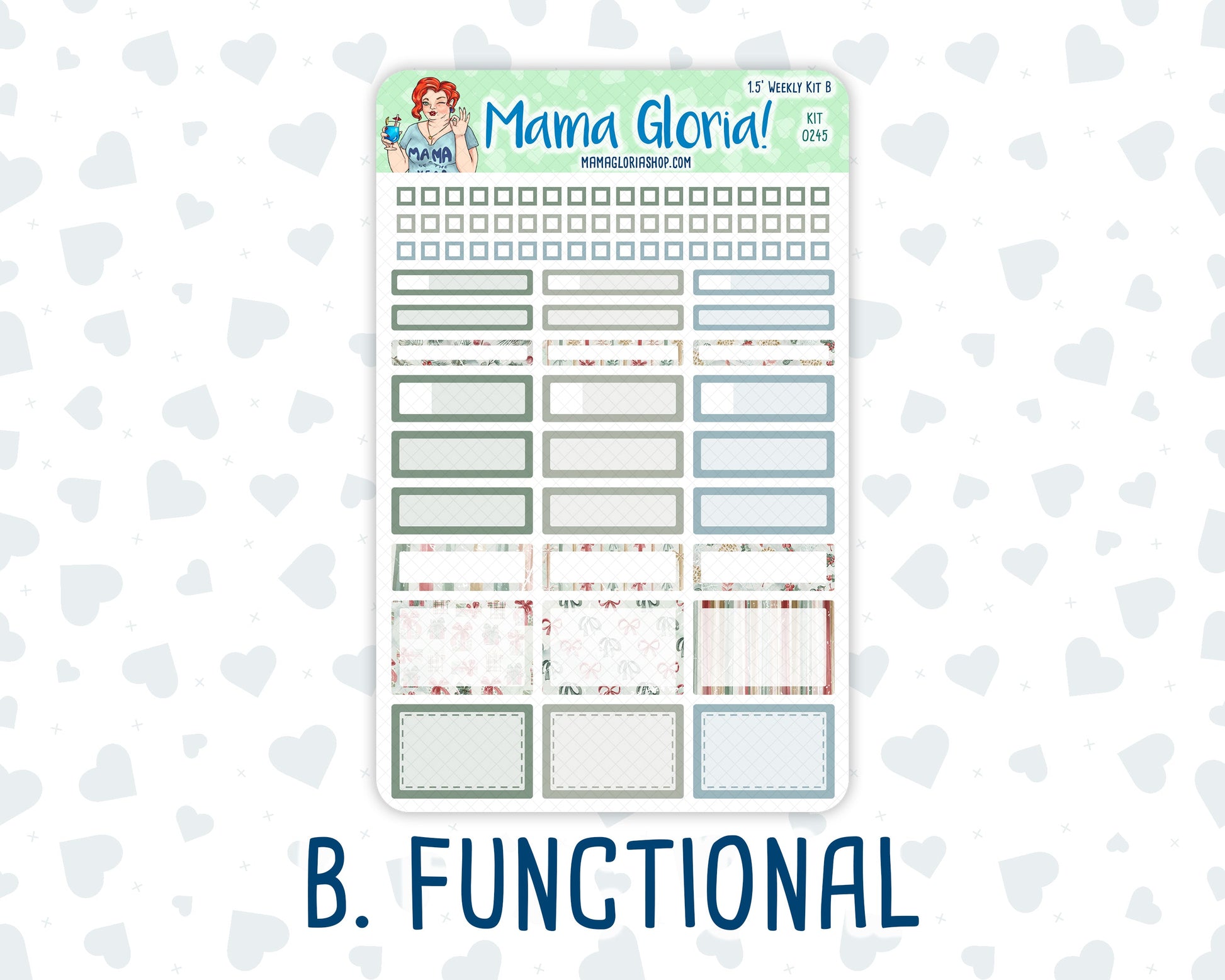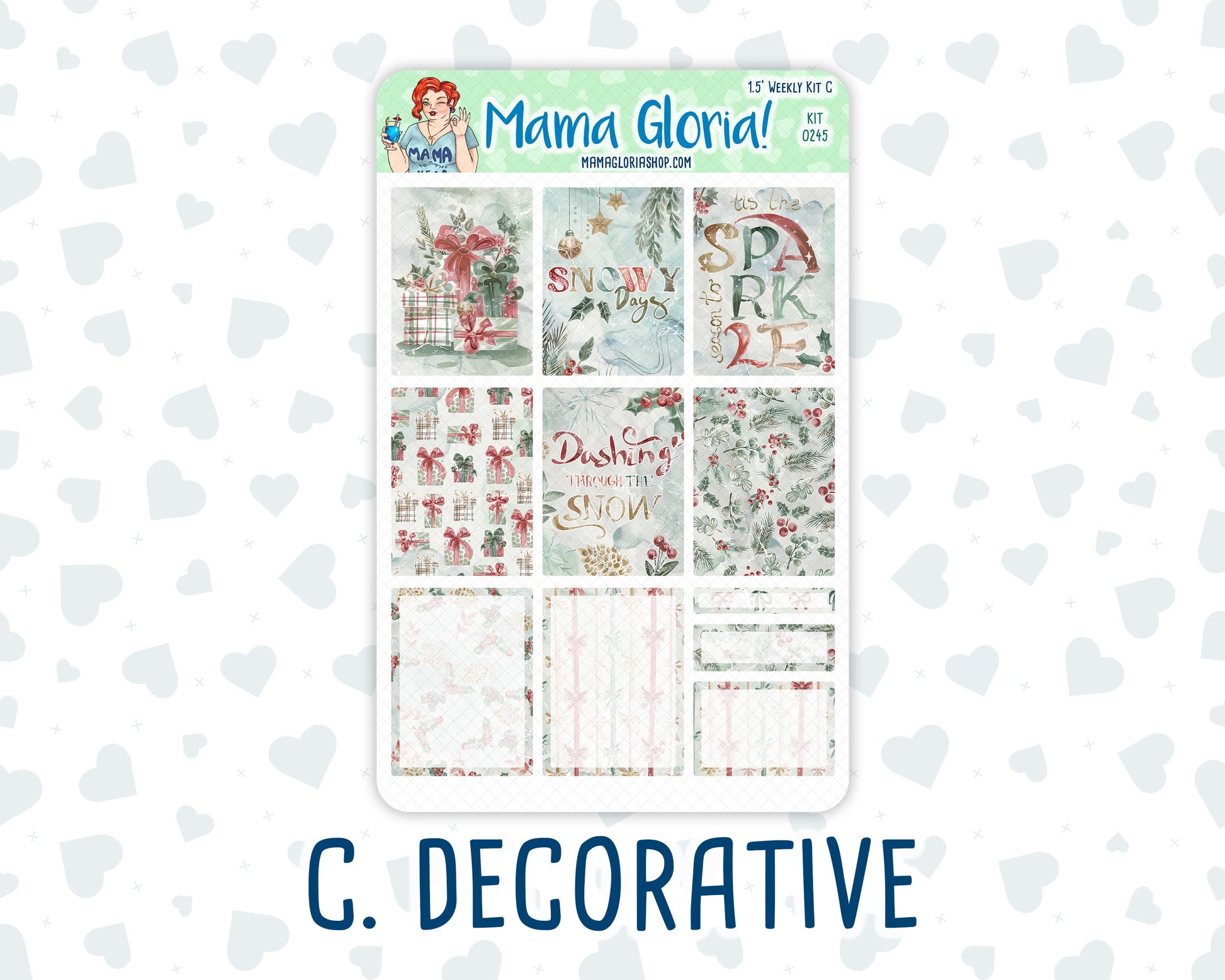 Kit 0245 - 1.5" Wide Column - Weekly Kit - December - Vintage Christmas - For Vertical & Hourly Planners