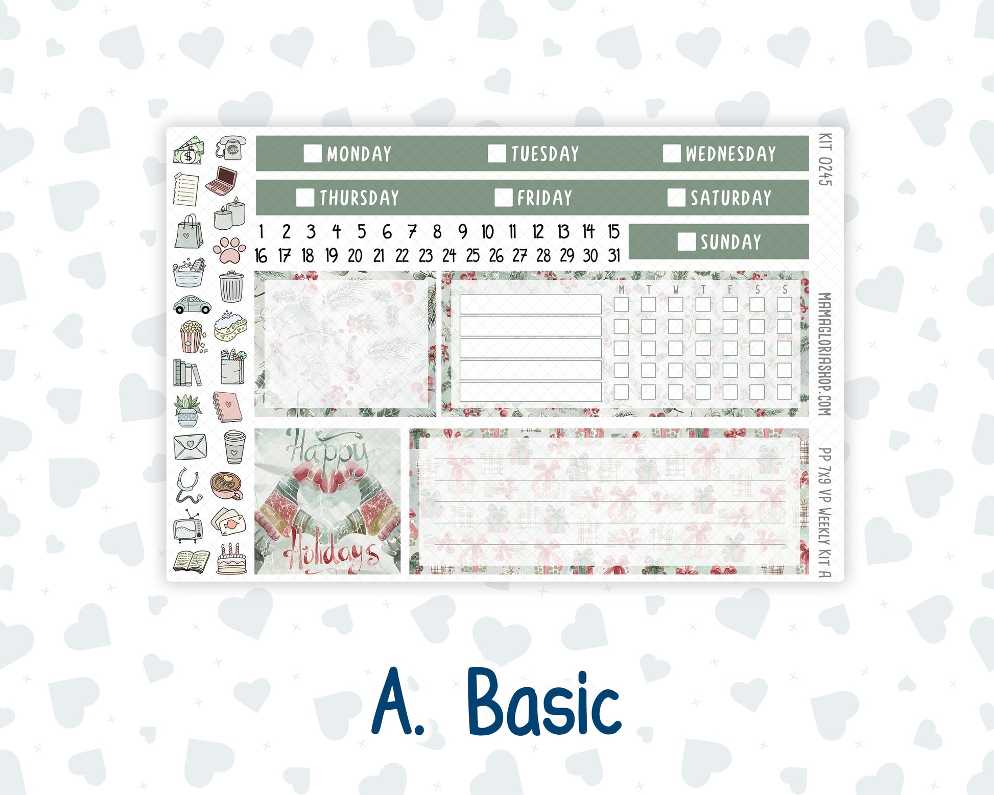 Kit 0245 - 7x9 - Vertical Priorities - Plum Paper - Weekly Kit - December - Vintage Christmas