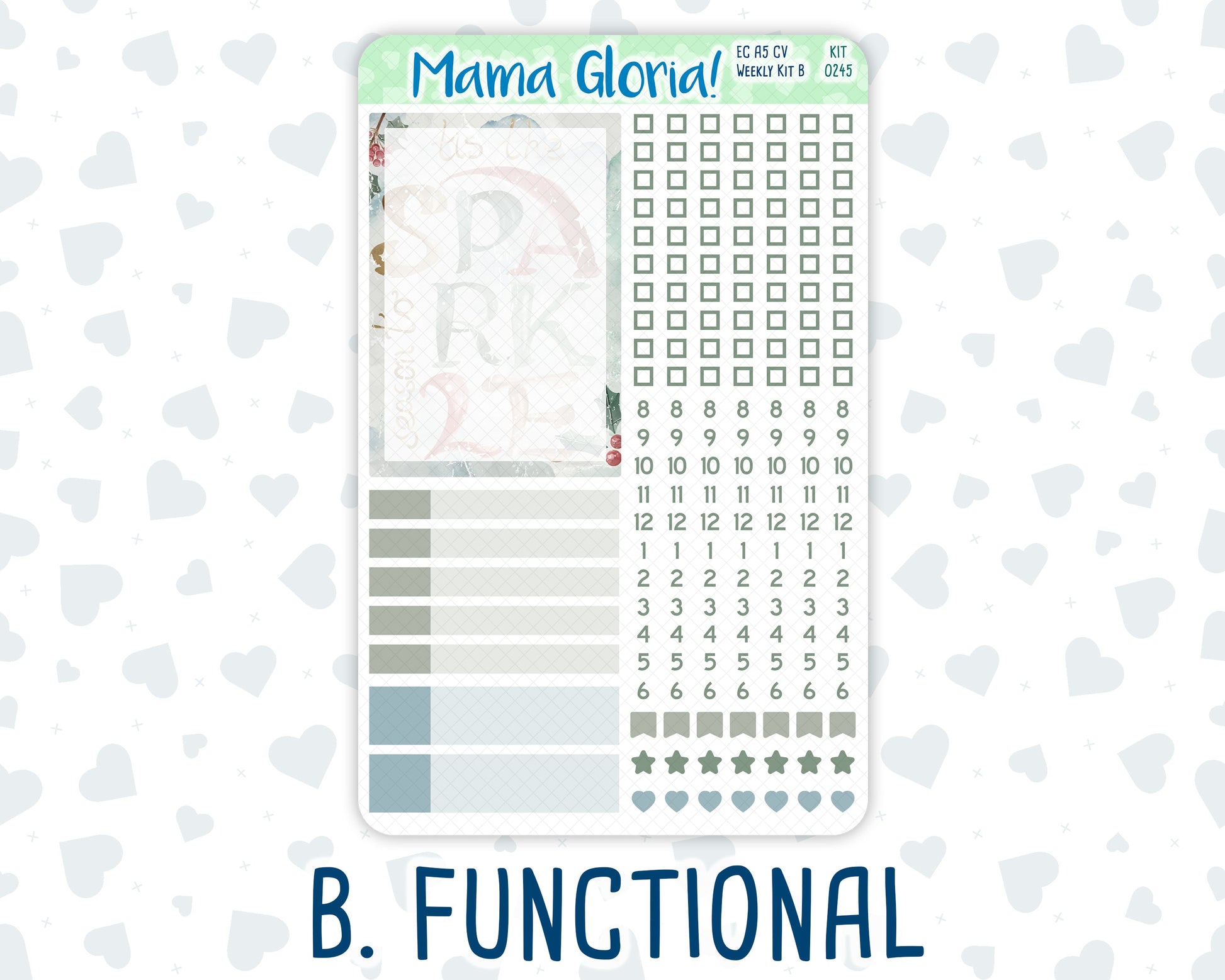 This kit is specifically designed for the Erin Condren A5 Compact Vertical planner. It also fits well with other A5 notebooks with lined, graph, or dot grid pages that have a free layout.