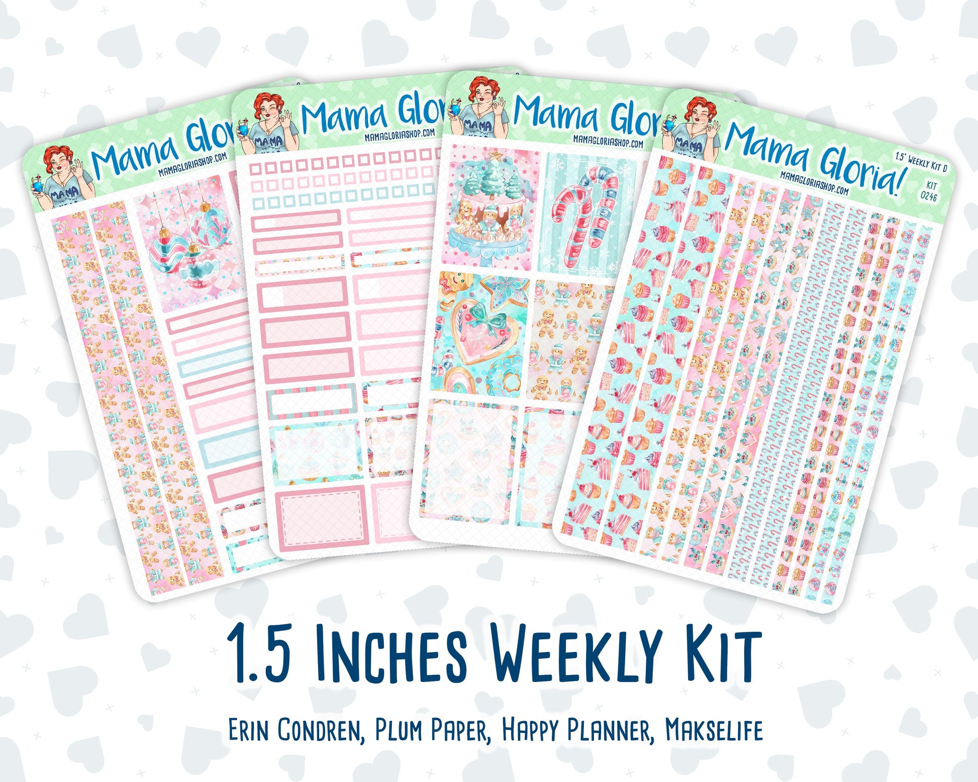 Kit 0246 - 1.5" Wide Column - Weekly Kit - December - Gingerbread Sweets - For Vertical & Hourly Planners