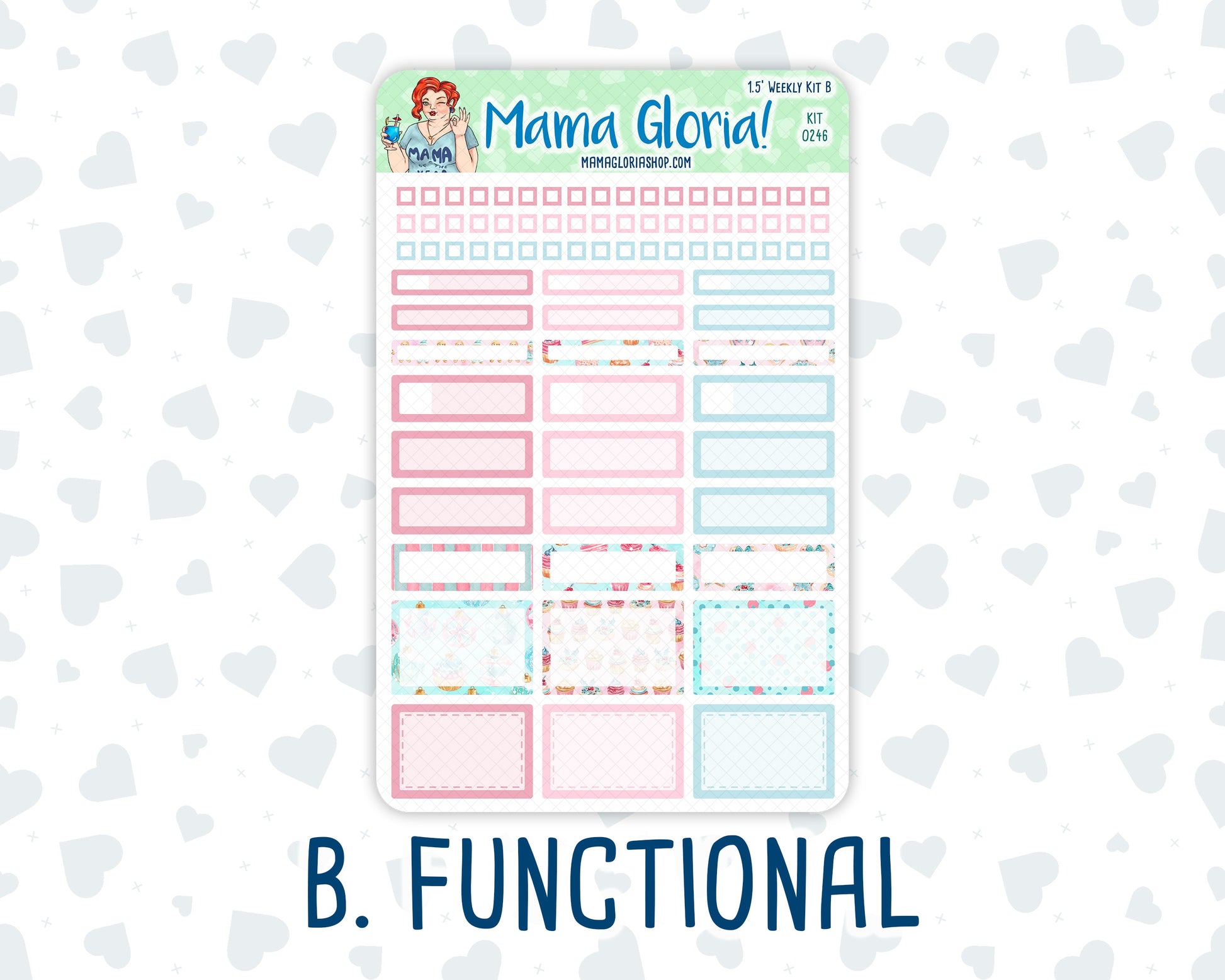 The Weekly kit consists of four full-sized sheets measuring 7.85 inches tall by 5 inches wide, including: