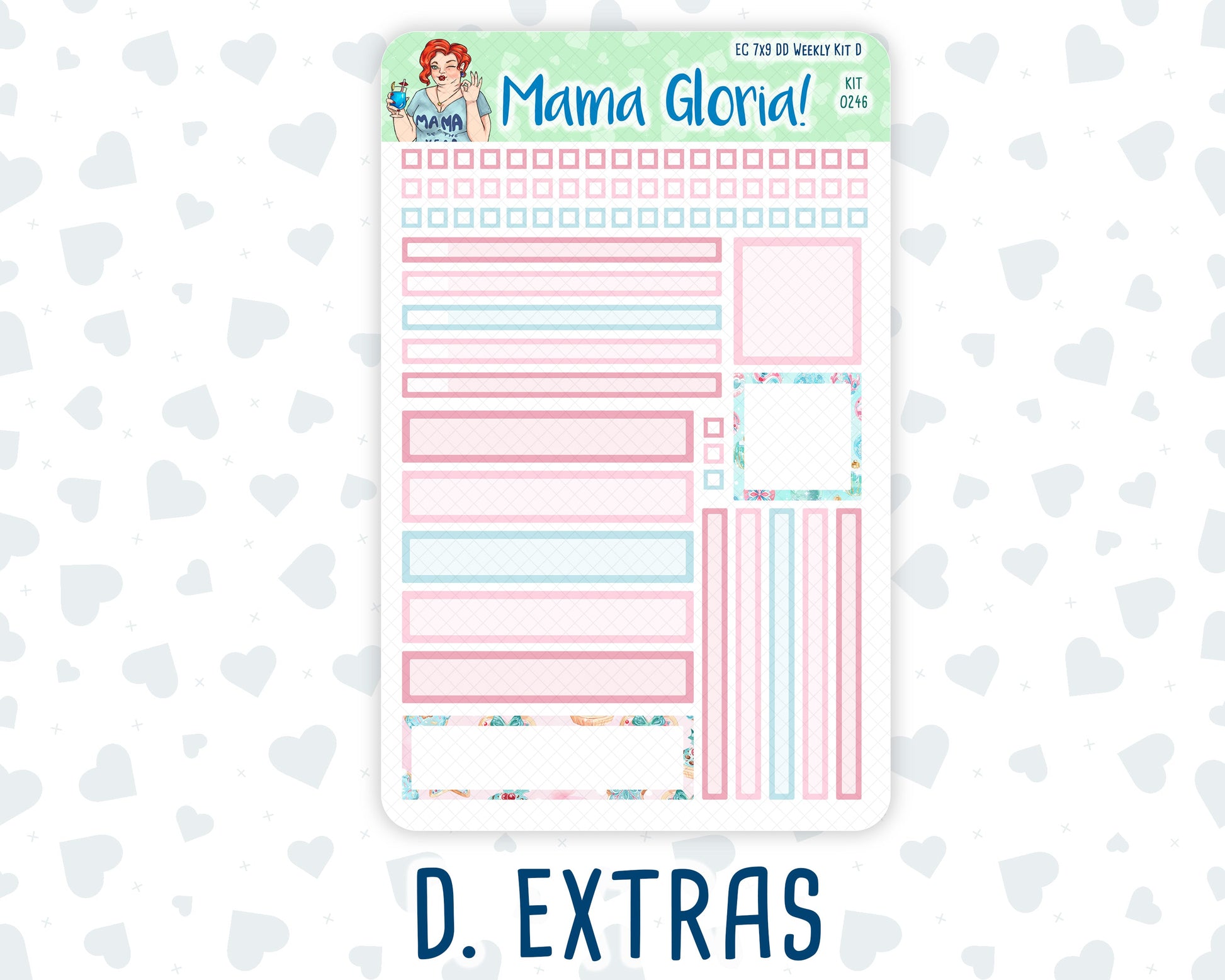 You can find additional stickers that complement this kit in the "Add Ons" category or by entering the kit's name or number in the store's search bar. Please note, WEEK AT A GLANCE and WEEKLY OVERVIEW sticker sheets are not included in the "Full Kit" option.