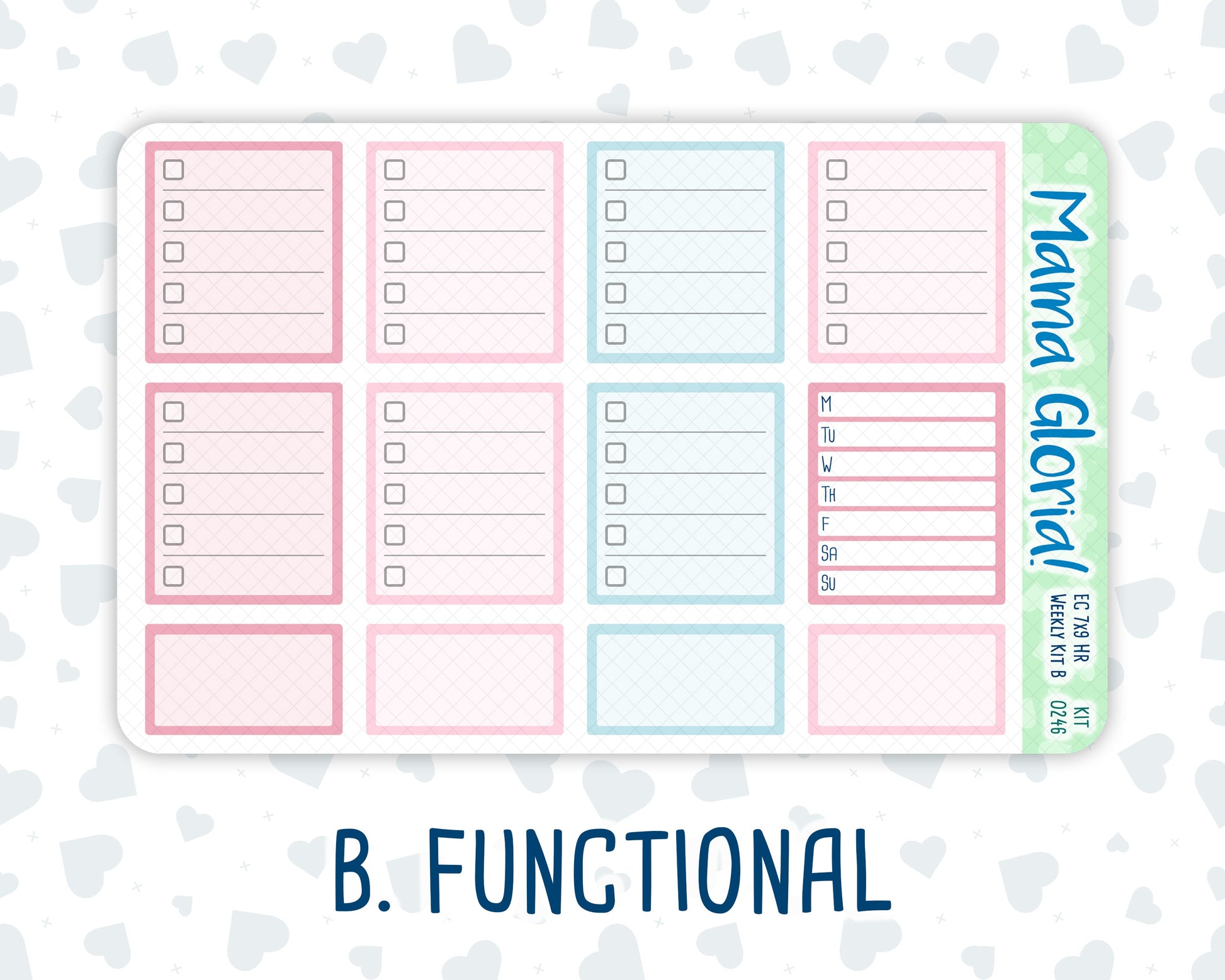 This kit is specially designed for the Erin Condren 7x9 Horizontal planner. However, some pages such as Functional, Extras, and Decorative are also suitable for the Erin Condren Hourly Planner.