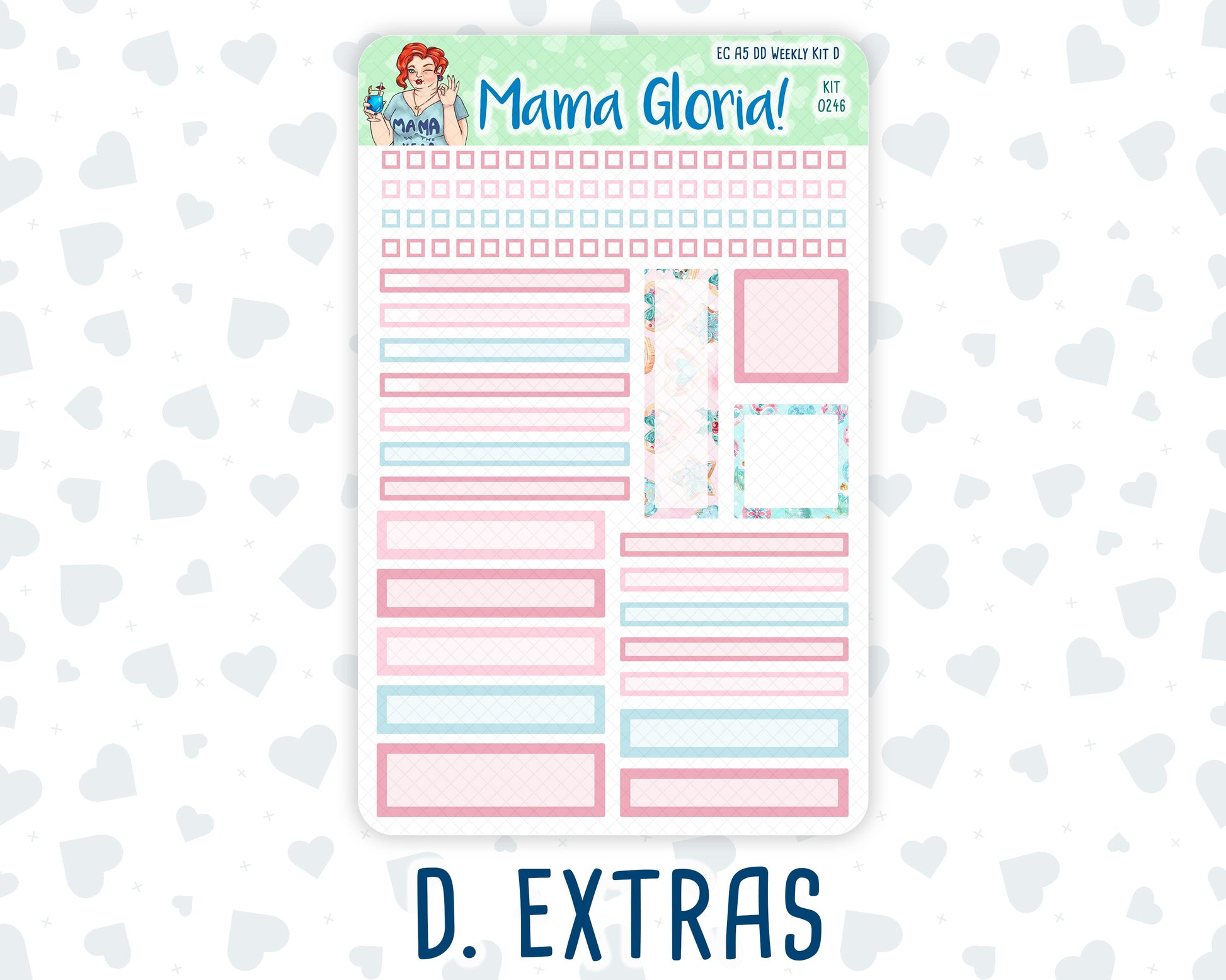 You can find additional stickers that complement this kit in the "Add Ons" category or by entering the kit's name or number in the store's search bar. Please note, WEEK AT A GLANCE and WEEKLY OVERVIEW sticker sheets are not included in the "Full Kit" option.