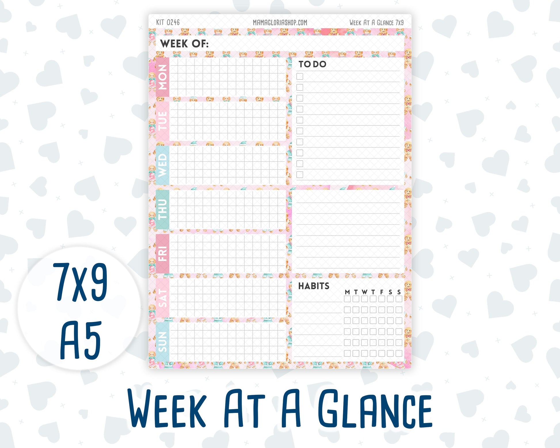 Week at A Glance full page sticker sheet is perfect for notebooks and journals to create your own layout. You can choose from two sizes: 7x9 and A5. It’s ideal to use with a daily planner at the beginning or end of the week for a quick weekly overview.