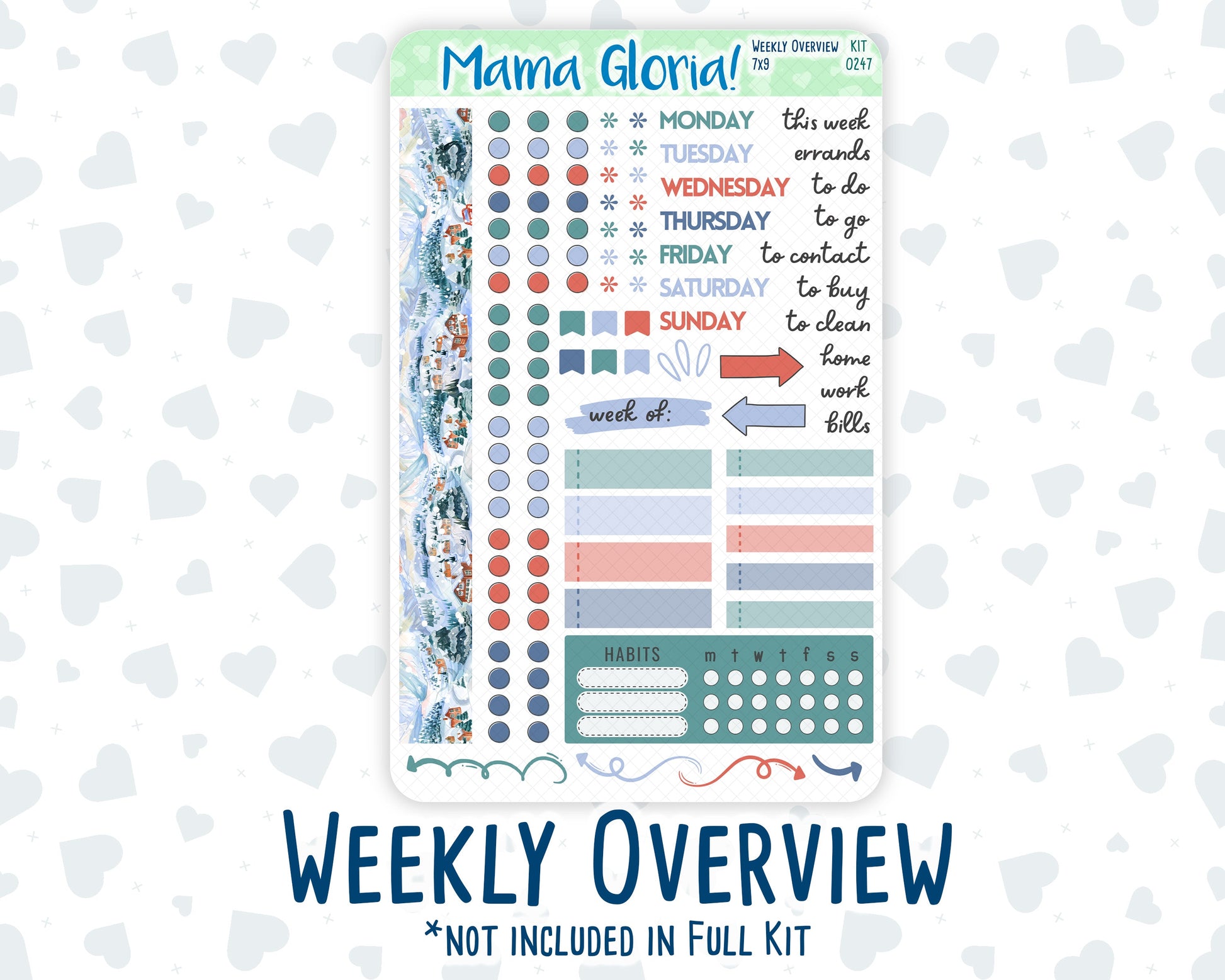 You can find additional stickers that complement this kit in the "Add Ons" category or by entering the kit's name or number in the store's search bar. Please note, WEEK AT A GLANCE and WEEKLY OVERVIEW sticker sheets are not included in the "Full Kit" option.