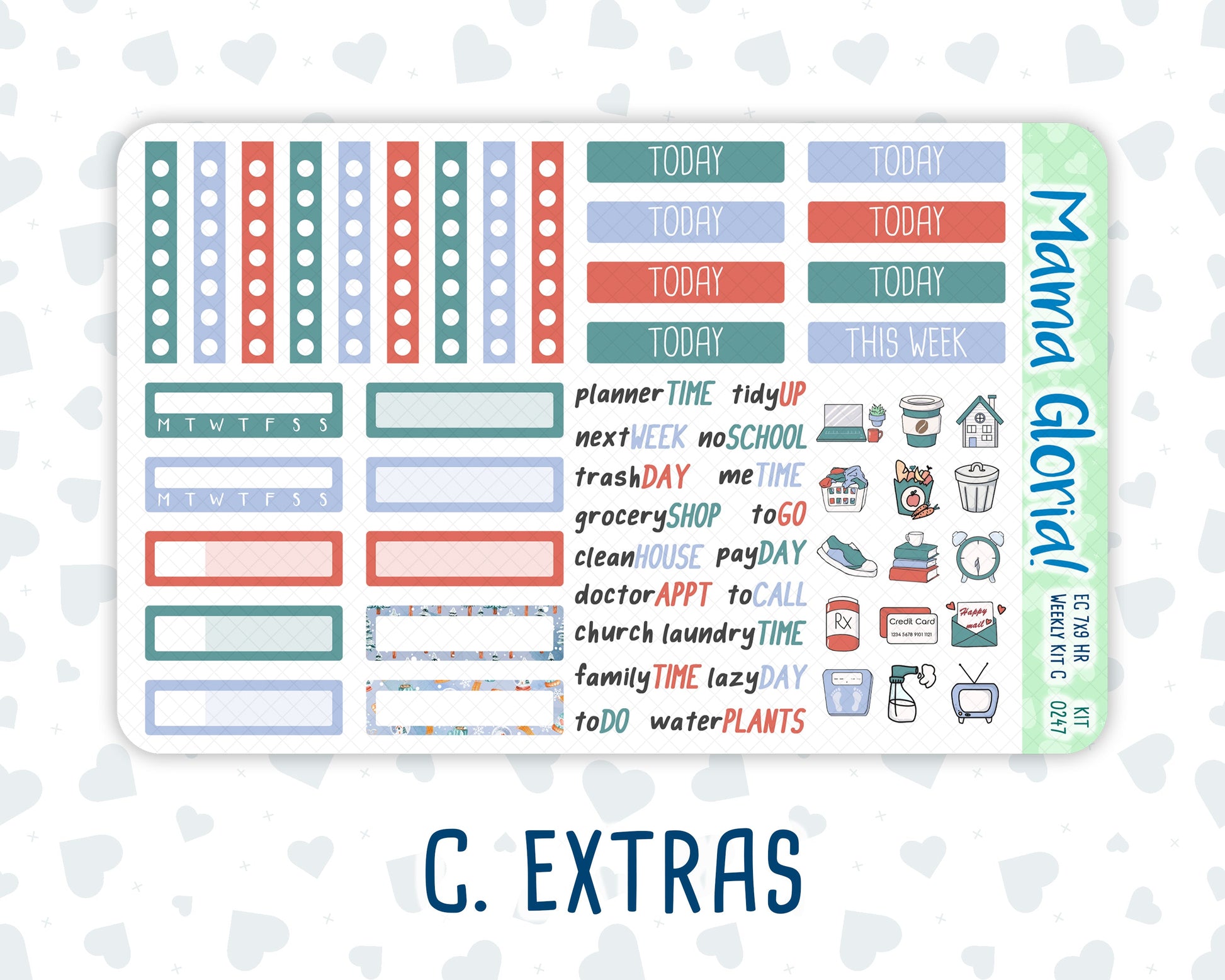 This kit is specially designed for the Erin Condren 7x9 Horizontal planner. However, some pages such as Functional, Extras, and Decorative are also suitable for the Erin Condren Hourly Planner.
