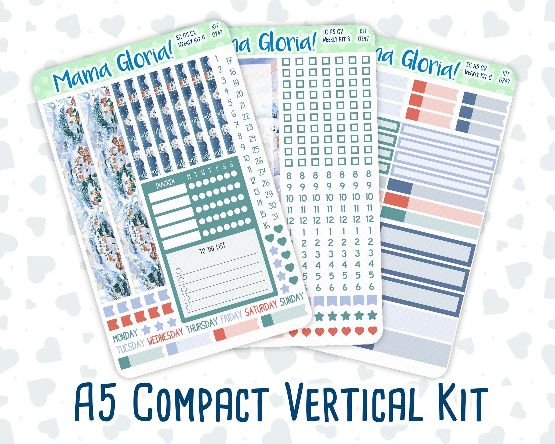Kit 0247 - A5 Compact Vertical - Weekly Kit - December - Snow Day Adventures