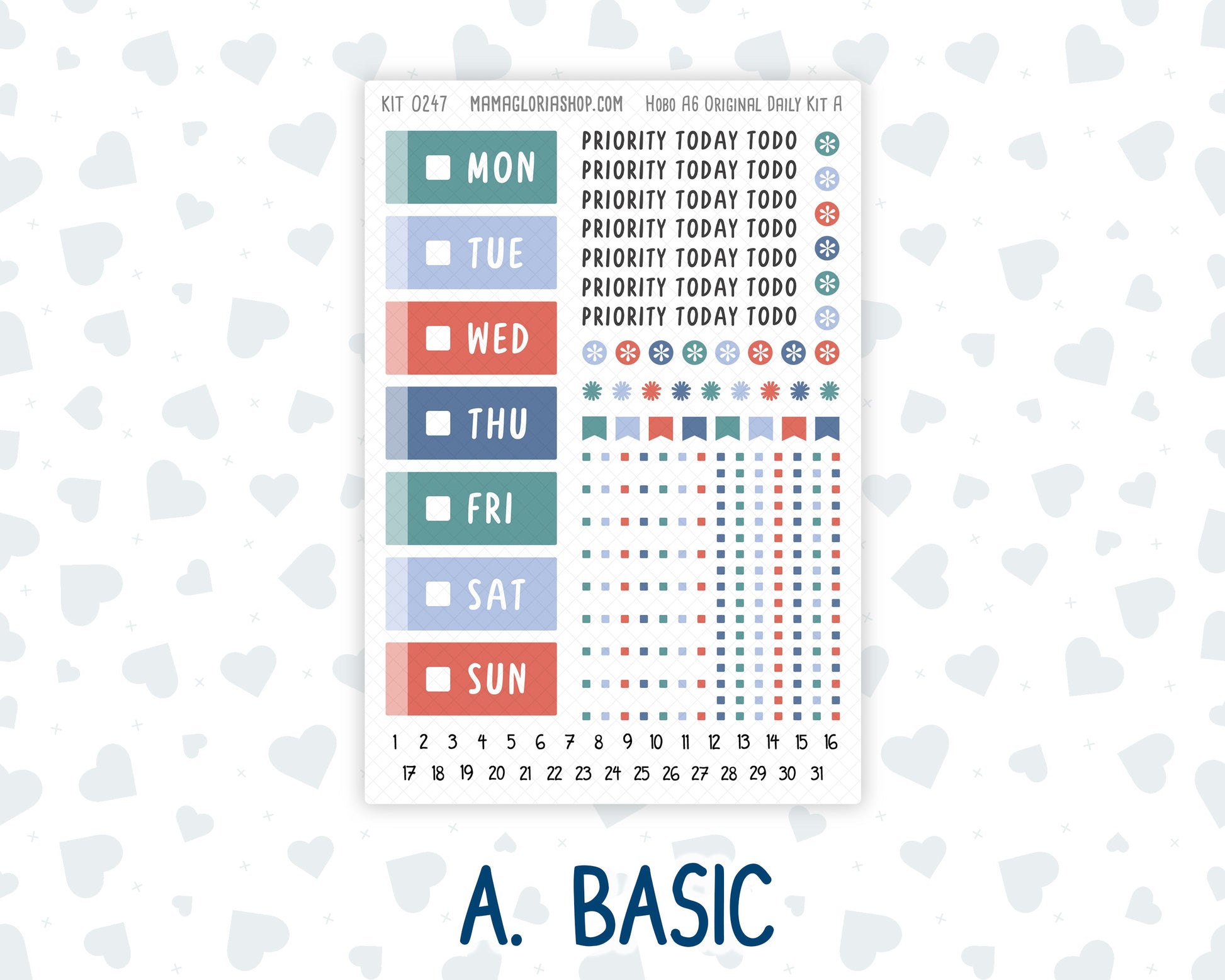 This kit is specifically designed for the daily pages in the A6 Hobonichi Techo Original Planner.