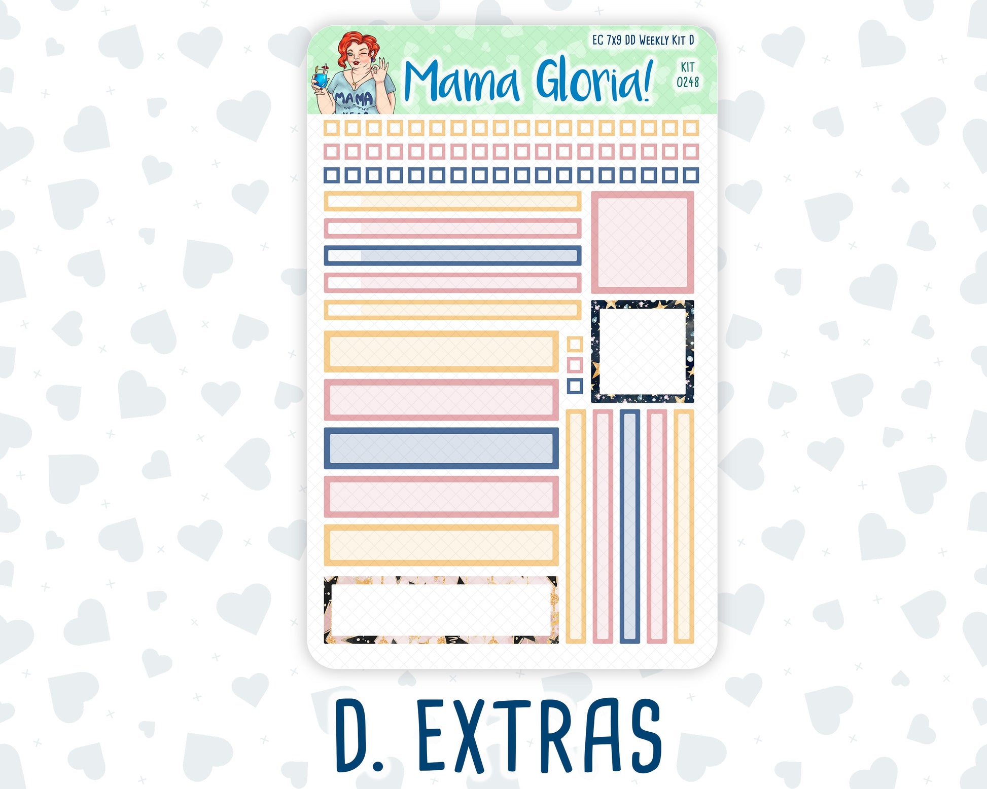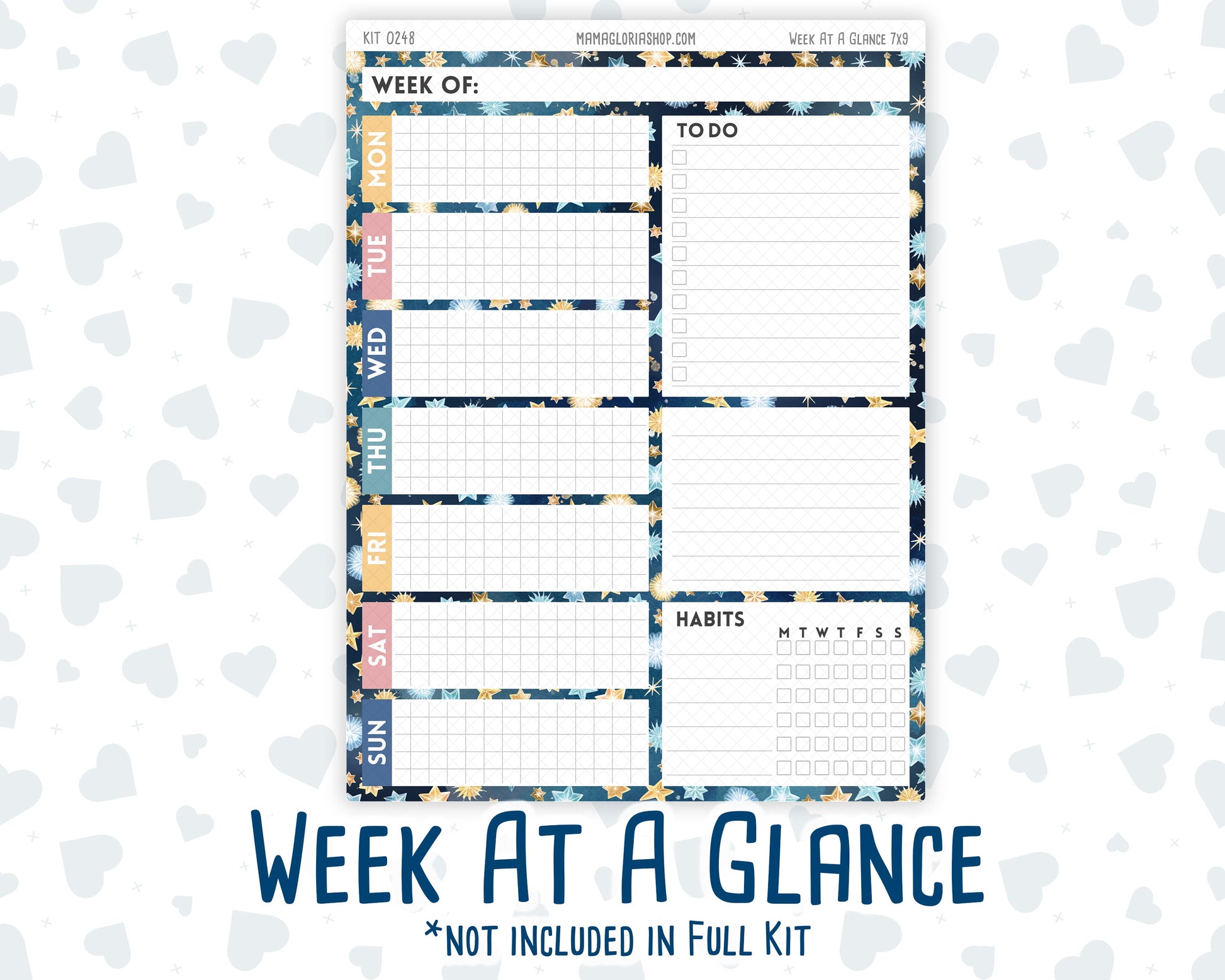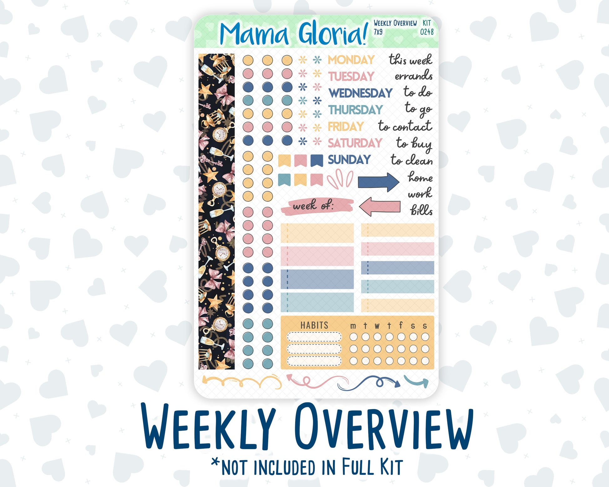 You can find additional stickers that complement this kit in the "Add Ons" category or by entering the kit's name or number in the store's search bar. Please note, WEEK AT A GLANCE and WEEKLY OVERVIEW sticker sheets are not included in the "Full Kit" option.