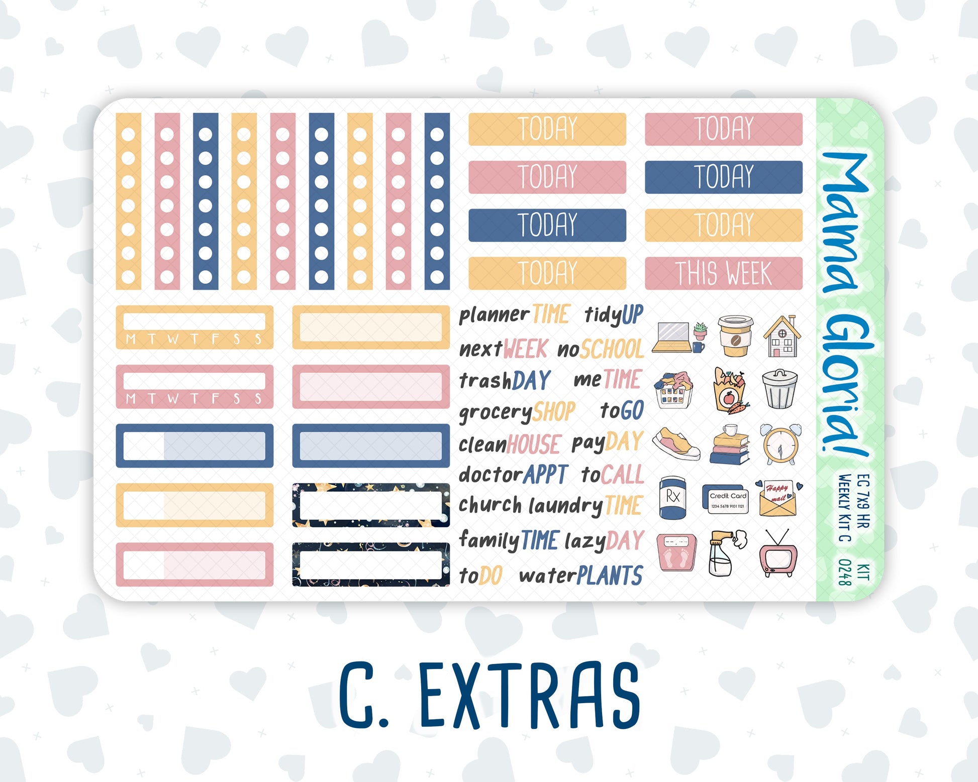 This kit is specially designed for the Erin Condren 7x9 Horizontal planner. However, some pages such as Functional, Extras, and Decorative are also suitable for the Erin Condren Hourly Planner.