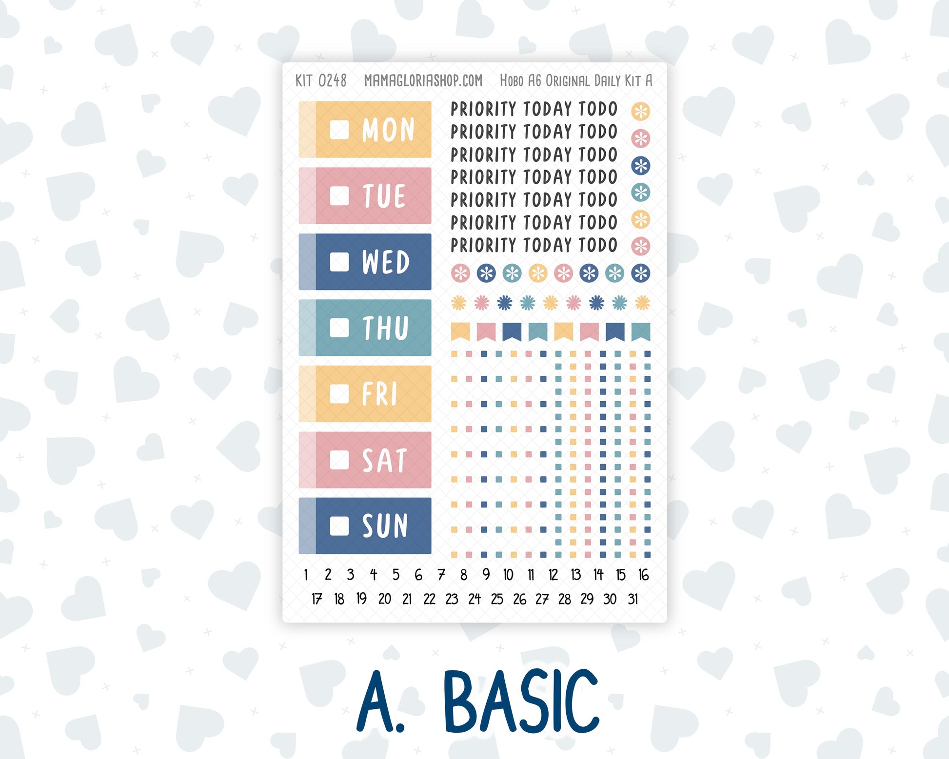 This kit is specifically designed for the daily pages in the A6 Hobonichi Techo Original Planner.