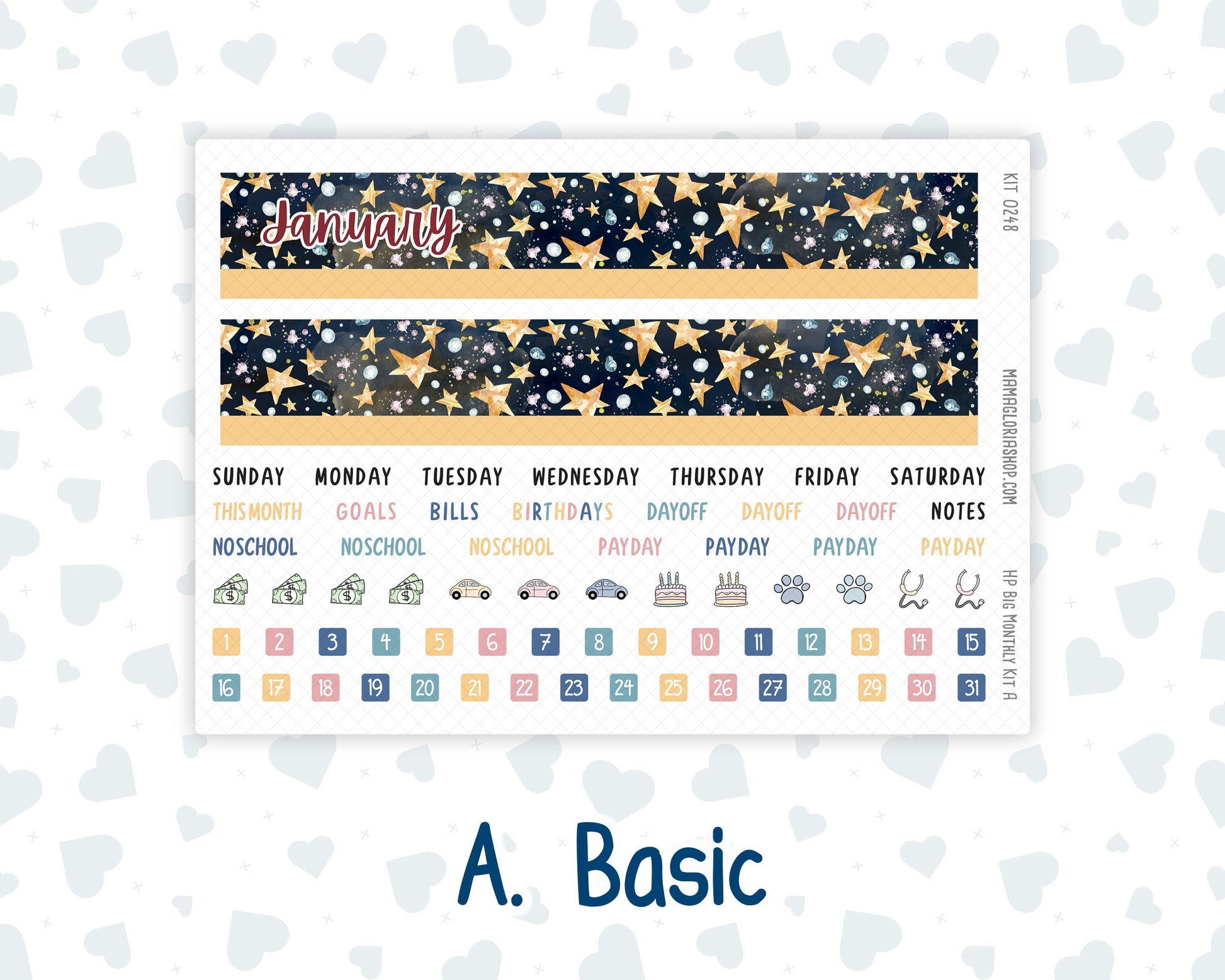 Kit 0248 - HP Big - Monthly Kit - January - Midnight Countdown - For Big Happy Planner