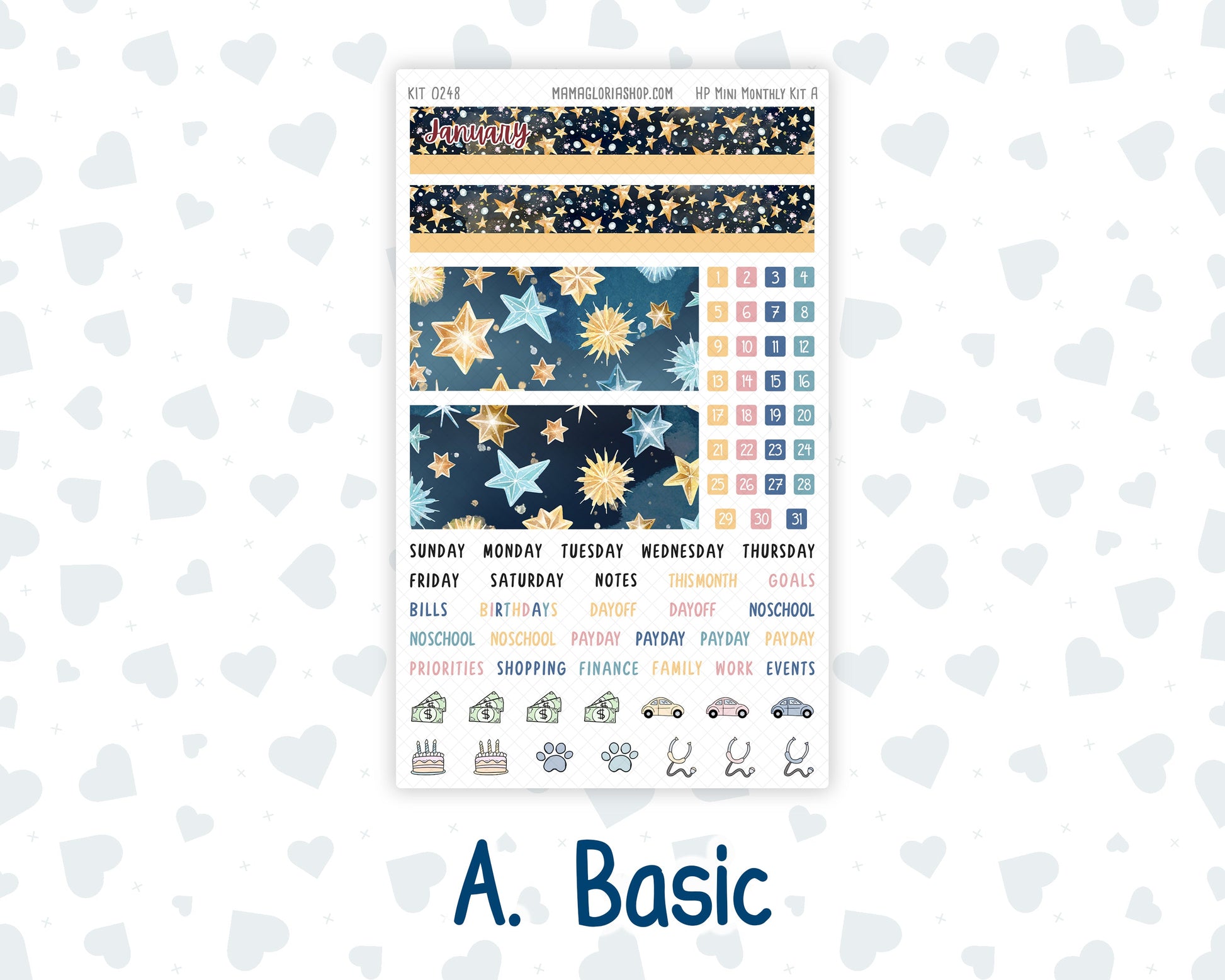 Kit 0248 - HP Mini - Monthly Kit - January - Midnight Countdown - For Mini Happy Planner