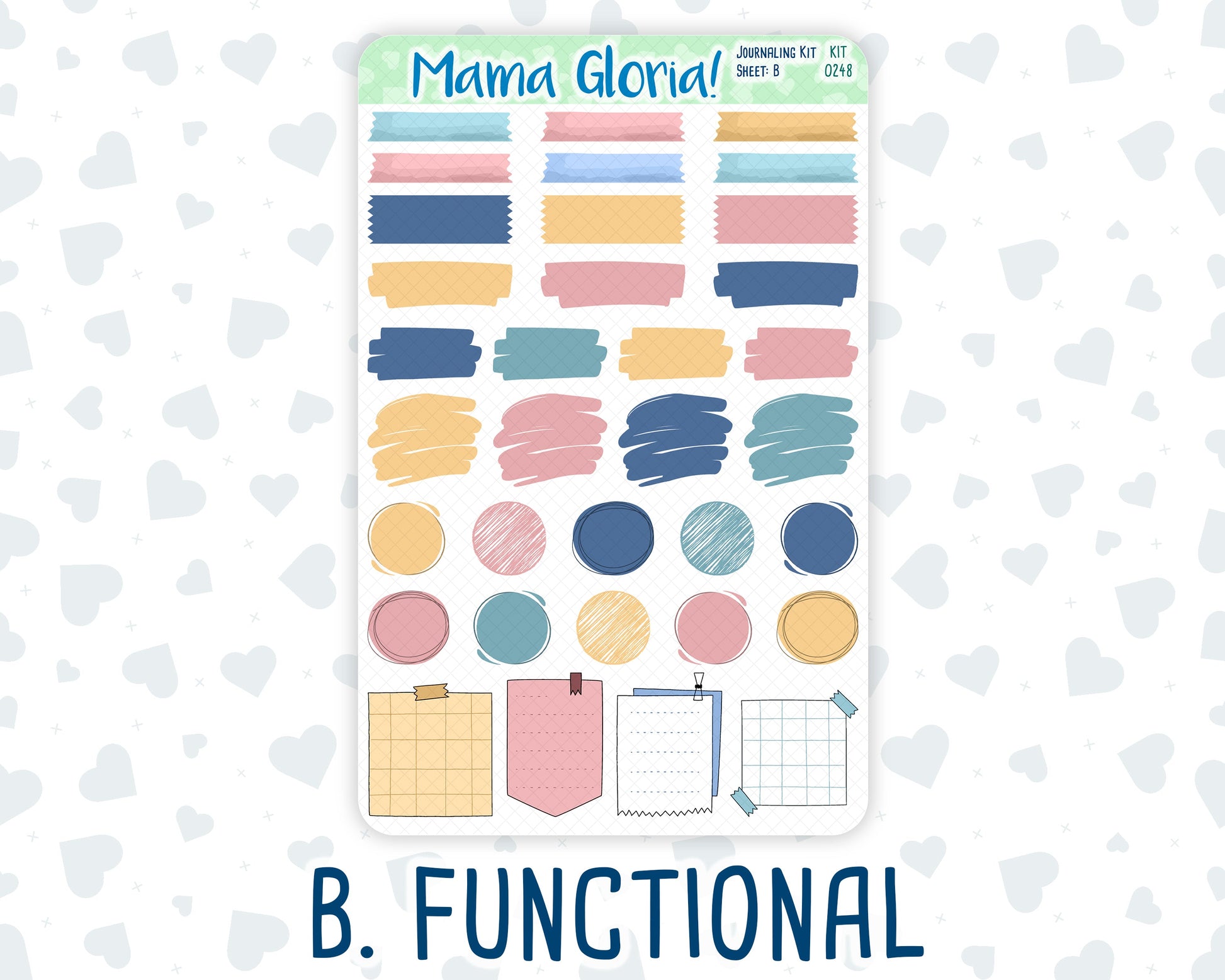 2. Functional – includes functional and decorative labels and boxes (1.5 inches wide), circle stickers, and sticky notes.