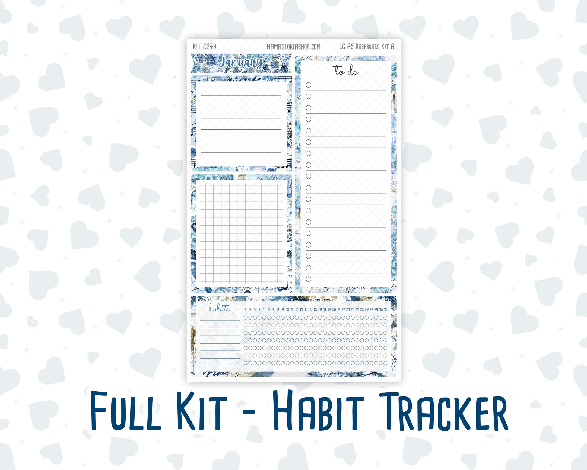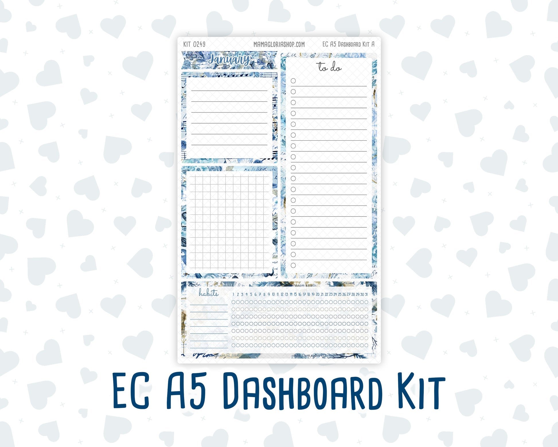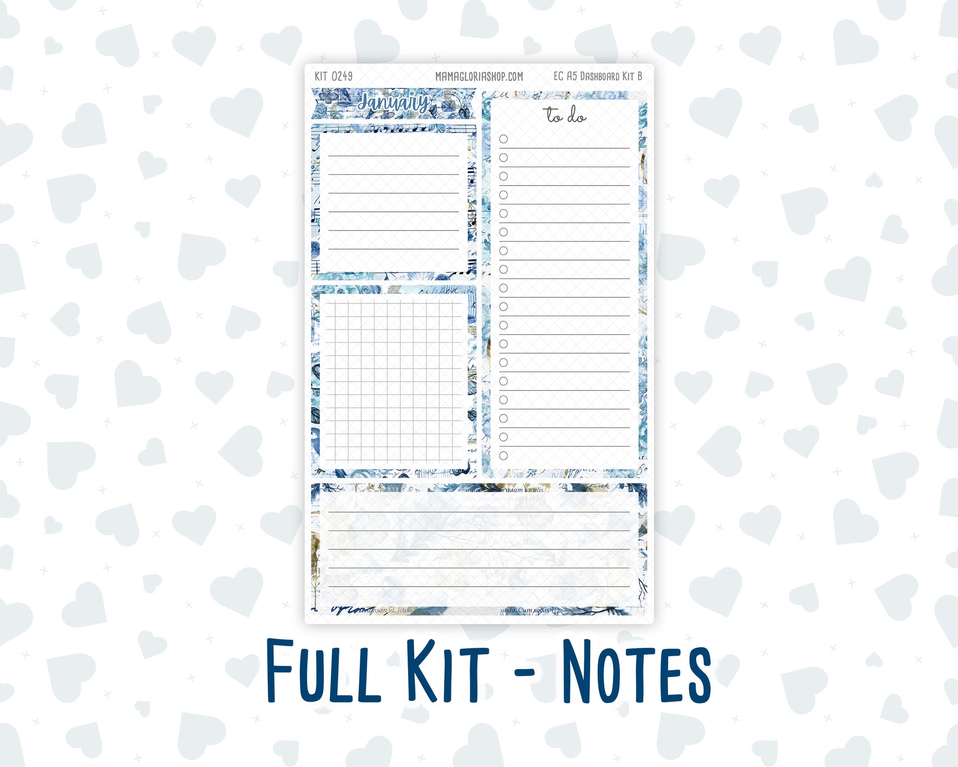 Kit 0249 - A5 - EC Notes Pages - Dashboard Kit | Productivity Page - January - Icy Lace
